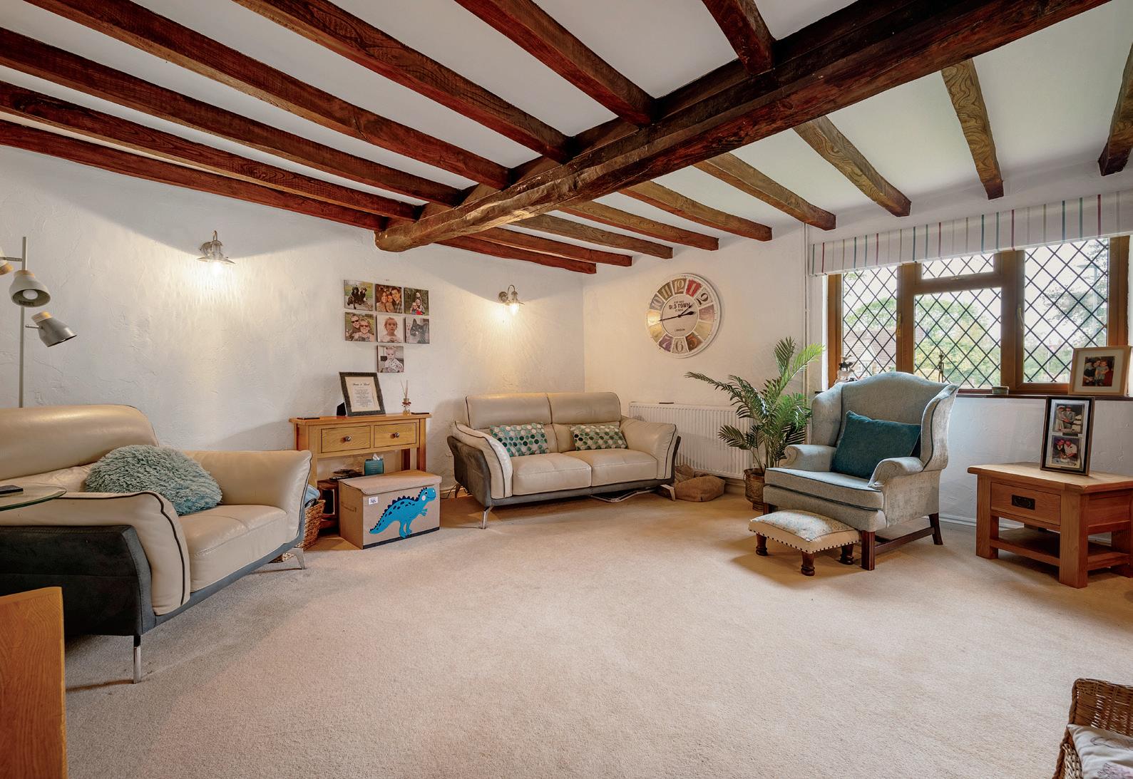 Lounge/Family Room: The lounge or family room offers yet another inviting space for relaxation and togetherness. The fireplace becomes a cosy focal point, framed by the beamed ceiling above. A window to the front elevation provides views of the surrounding landscape. This room is perfect for casual family time, movie nights, or simply enjoying the warmth of the fireplace.