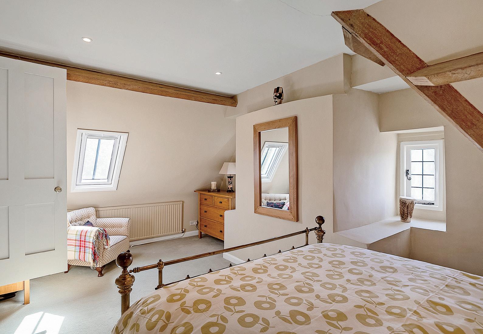 The feature bedroom has an exposed beam, built in wardrobes, windows to the front and rear, and a door which leads to a large en-suite, benefitting from a bath and separate shower.