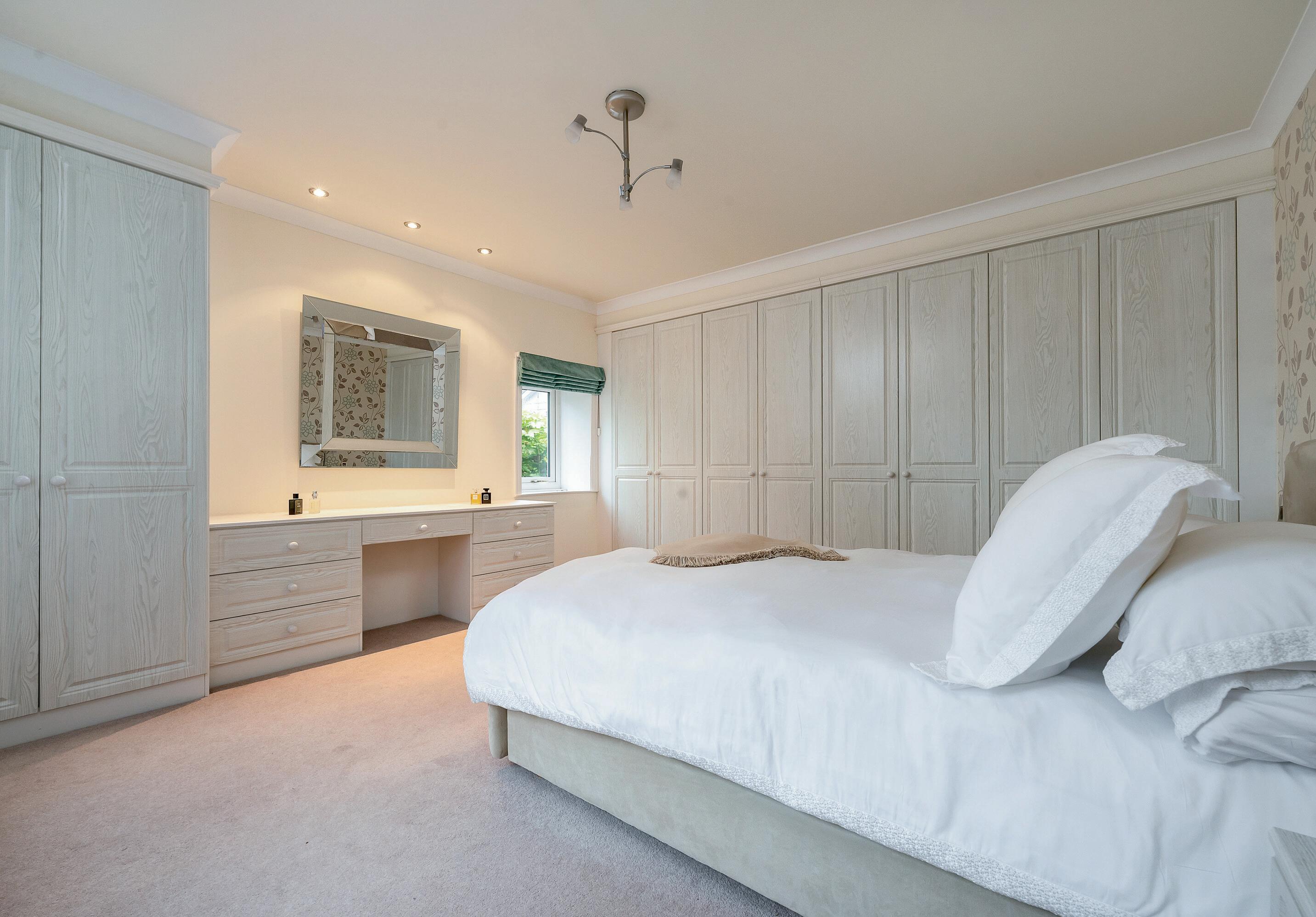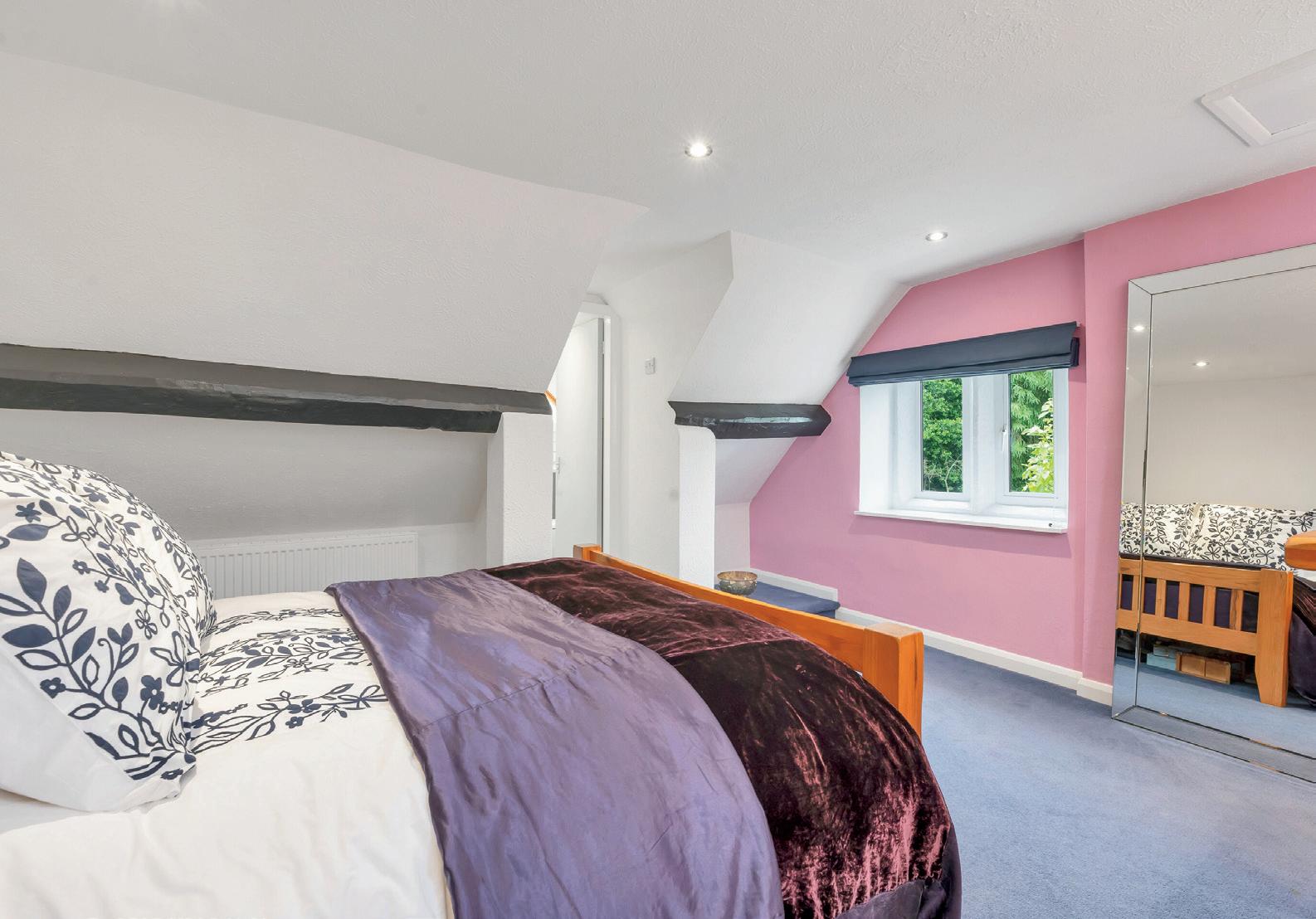 The principal bedroom enjoys a dual aspect with expansive fitted wardrobes and has tremendous potential to extend into the adjacent potting shed/workshop to create a dressing room or ensuite. Bedroom two, located in a private position on the second floor features a stylish ensuite.