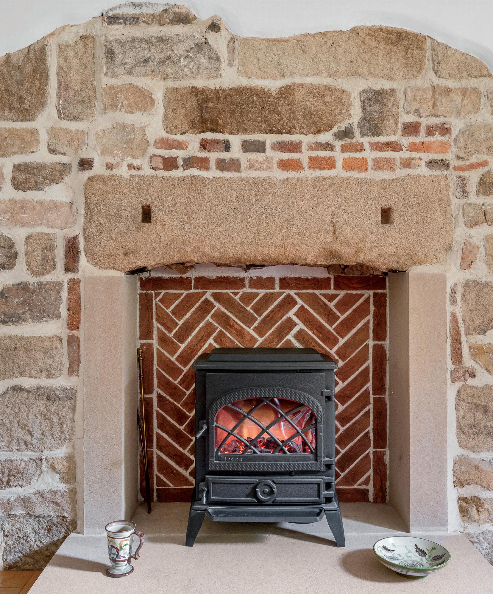 The traditionally styled breakfast kitchen boasts limed oak paneled drawers and cupboards, ample preparation surfaces, and a butler-style ceramic sink. It is equipped with an Aga, integrated microwave, fridge, and dishwasher. A window to the front aspect overlooks the garden, while a side window and glazed door draw light from the side porch, which also houses plumbing for a washing machine and offers garden access.