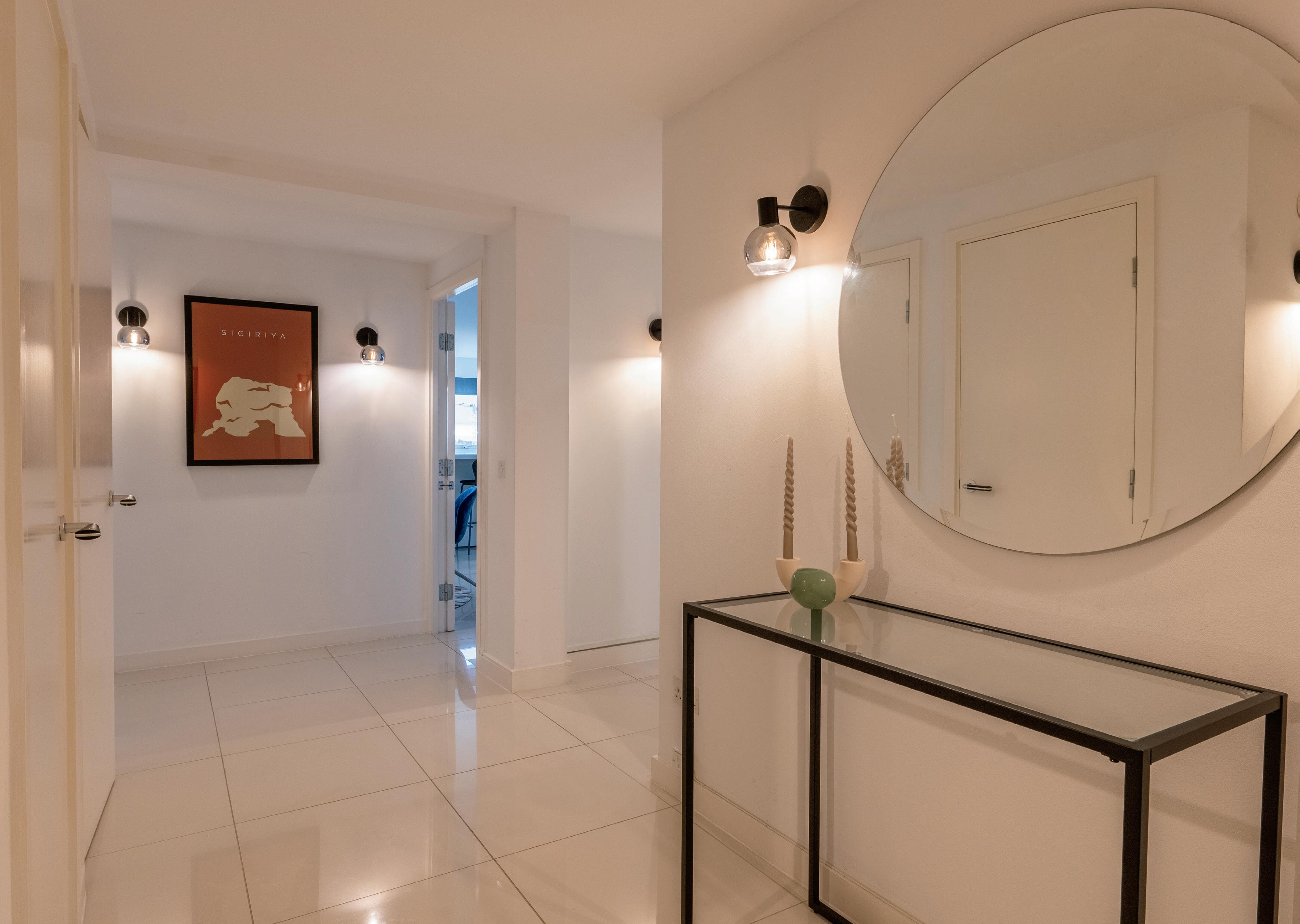 Bedroom 2 is another very spacious room, with tiled floor, ample space for free standing furniture and a window overlooking the iconic Mailbox and Orion Building.