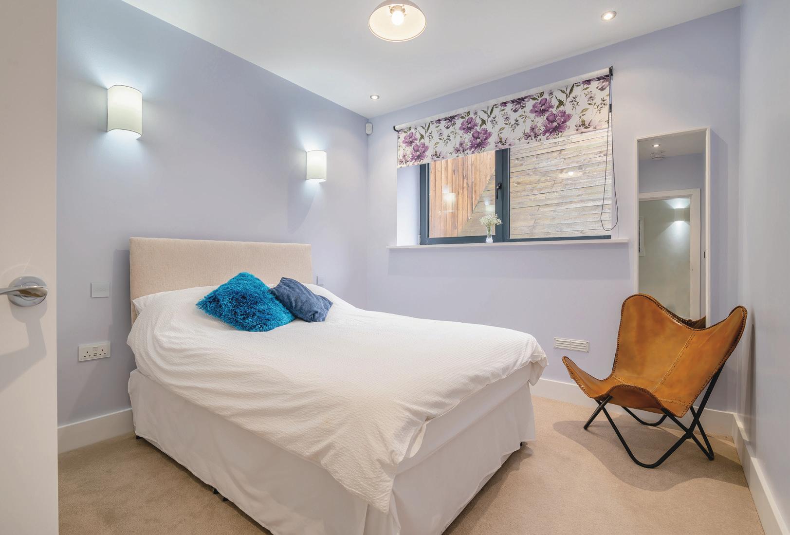 The principal bedroom is a haven of luxury, complete with bi-folding doors that open to stunning views of the gardens. It features bespoke fitted wardrobes and a luxurious ensuite with a slipper bath, walk-in shower, and motion-sensor lighting. Two additional double bedrooms, each with their own ensuite bathrooms, also enjoy the same spectacular garden views via their own bi-folding doors.