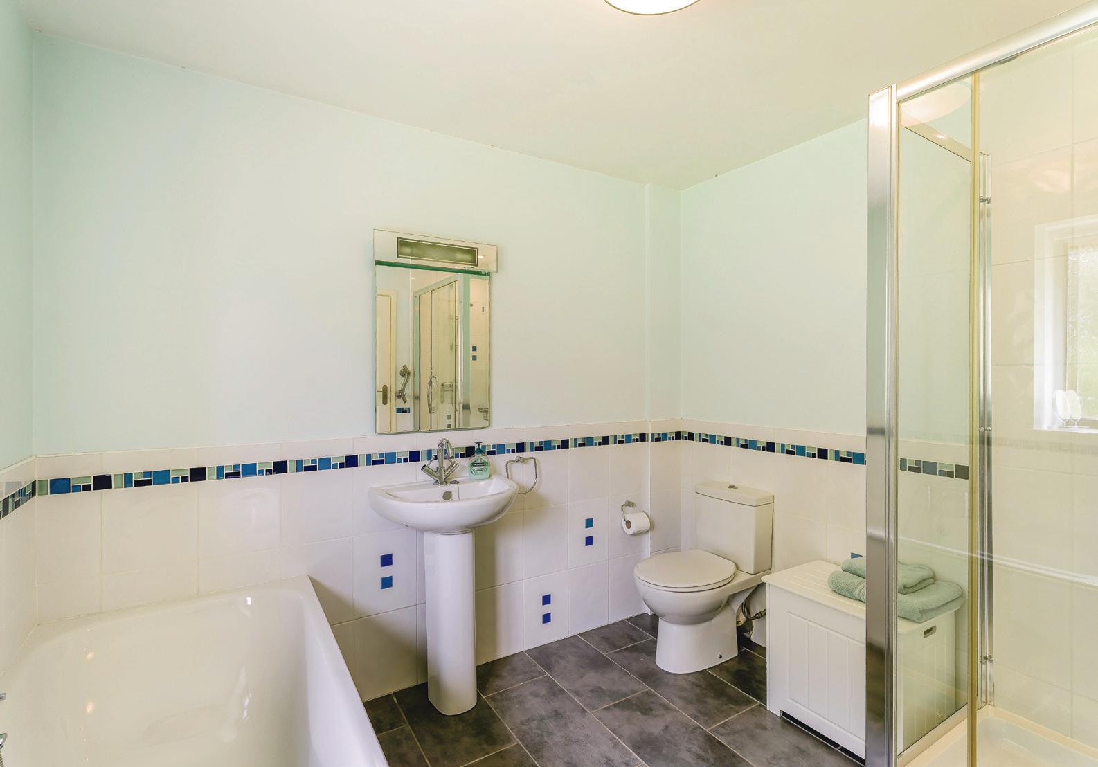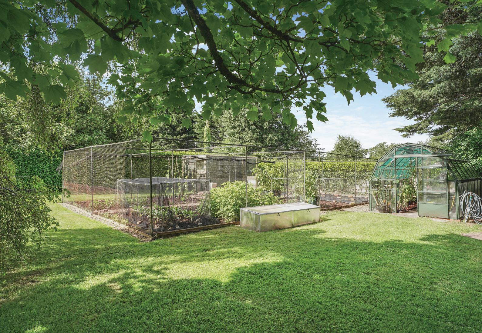During their time at Woodlands, the owners have made numerous improvements to the property. “Inside, we have extended and refitted the kitchen with ‘Wren’ cabinetry,” they say, “as well as transforming the family bathroom and creating new en suites for two of the bedrooms. Outside, besides necessary maintenance work, we have installed Solar Electric and Water panels on the large south facing roof. Our biggest project, however, has been relandscaping the gardens: we have planted trees; created a large pond which is now teeming with wildlife; redeveloped and planted the borders; established a productive vegetable plot; installed a large ‘Hartley Botanical’ greenhouse; and replaced existing tumbledown sheds with new architect designed garages and workshop.”