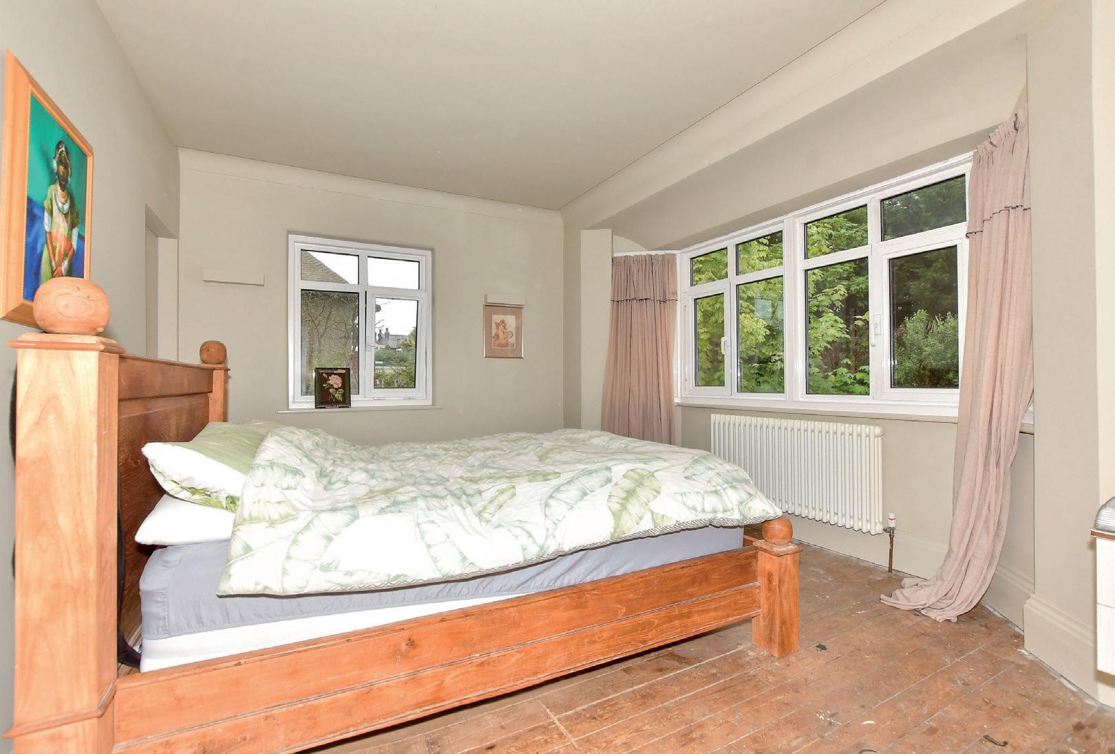Set well back from the road with its high chimneystack, varied roof lines and bargeboards, bay windows, delightful veranda style porch and original front door with a stained glass insert, this large and imposing detached family home provides delightful features from a bygone era, even before you cross the threshold. It is partially hidden from the avenue by high hedging bordering a wide entrance leading to a crazy paved parking area, a detached self-contained annex and the front porch. There is also a pedestrian entrance and a crazy paved path flanked by a lawn interspersed with trees surrounded by a dwarf Kent ragstone wall.