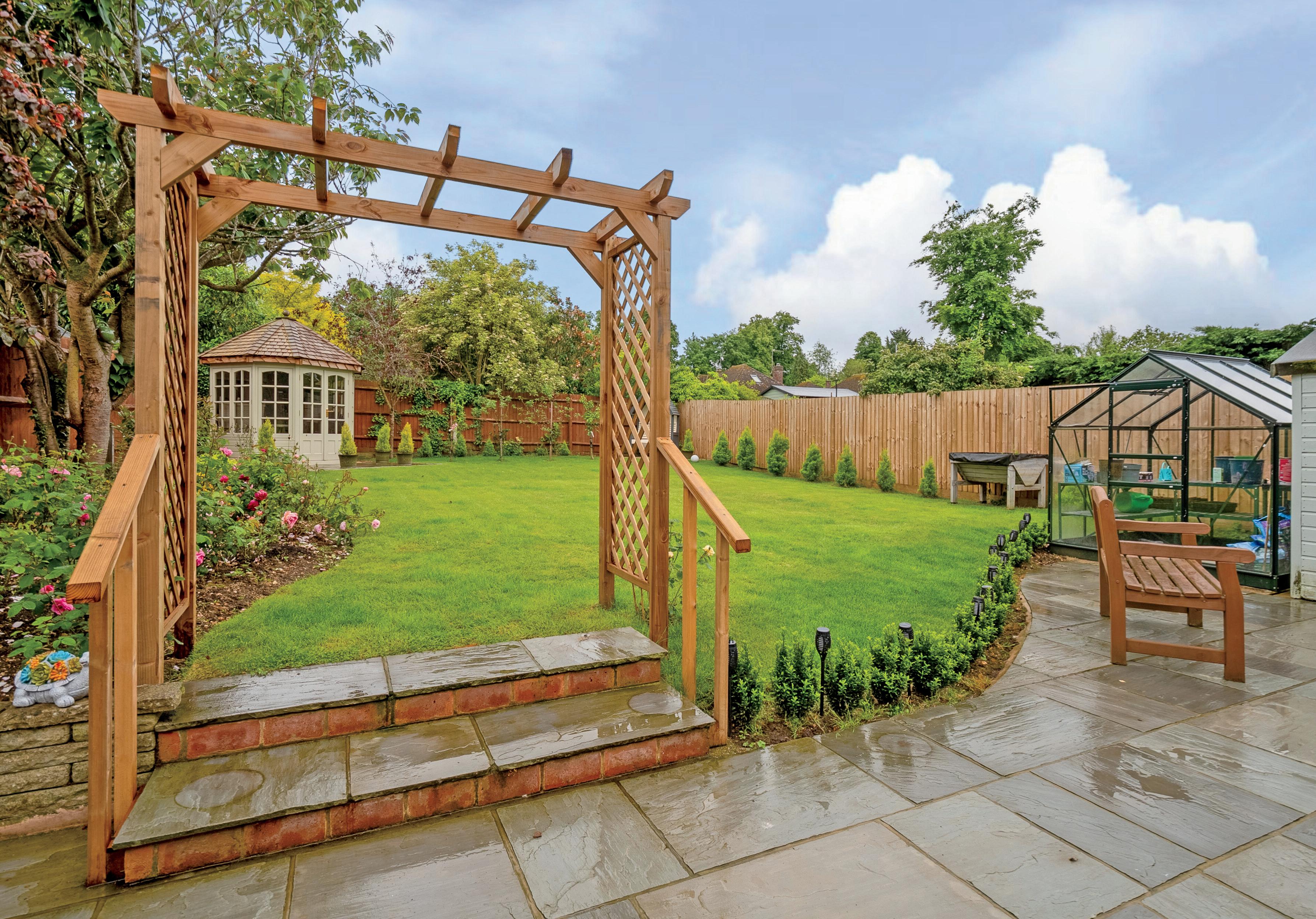 Now, this is the ideal home for everyday life and entertaining alike: “The kitchen and adjacent garden room lead into the dining room, where we have frequently hosted dinner parties for family and friends. The house flows easily out into the secluded, South Facing rear garden via a patio seating area, which has seen countless summer barbecues. The garden itself has been landscaped to provide a relaxed place to enjoy the warmer weather in the summer months, complete with a loveseat, summerhouse, and beautiful planting courtesy of my green-fingered mother! Both indoors and out, we have had great fun creating and living in our home here and have enjoyed being able to share it with people we love.”