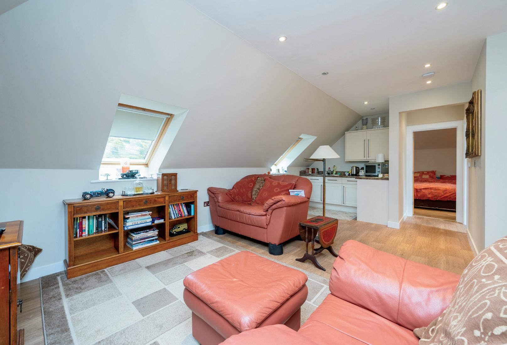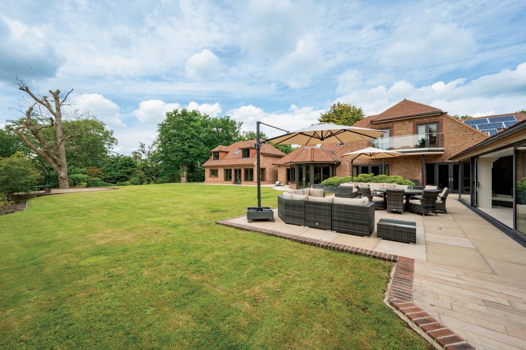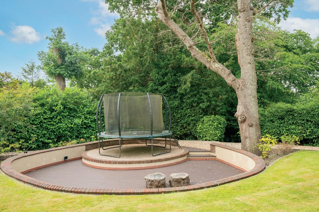 Outside, the house sits in a secluded plot just under an acre, with a well-manicured lawn, shrubs and trees surrounding the border. The expansive patio area creates a seamless indoor-outdoor flow from the swimming pool, ideal for entertaining. With two further secluded patio areas to the side of the house providing further outside space for alfresco dining. The triple garage provides electric doors and a garden room to the back. The private front door and entrance hall houses the staircase leading to the annexe above. The self-contained annexe provides an open plan kitchen/living area, bedroom and bathroom.
