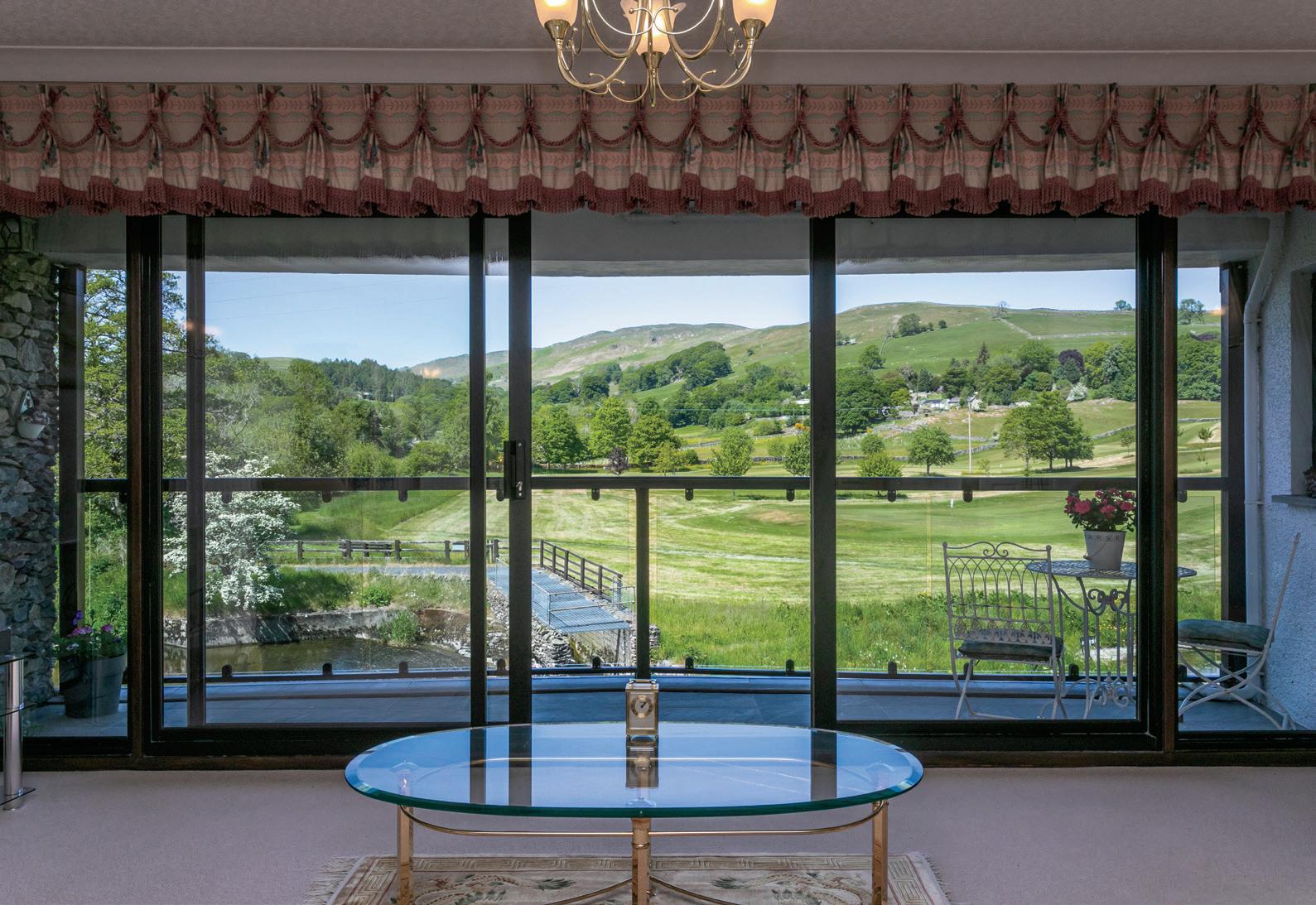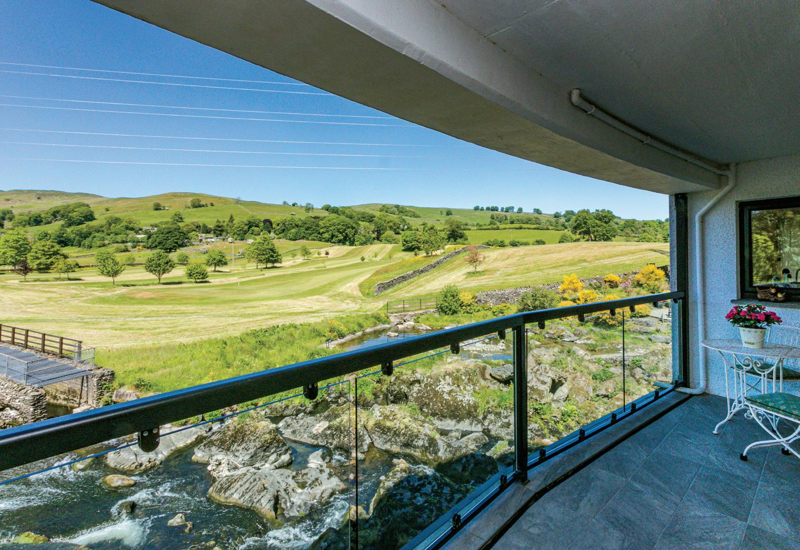 There are superb views from the reception room, the kitchen, all three bedrooms and the super covered balcony. The views evolve room by room and take in the River Kent with its weir and rockpools, the golf course and as a general backdrop, the Kentmere fells lie beyond.
