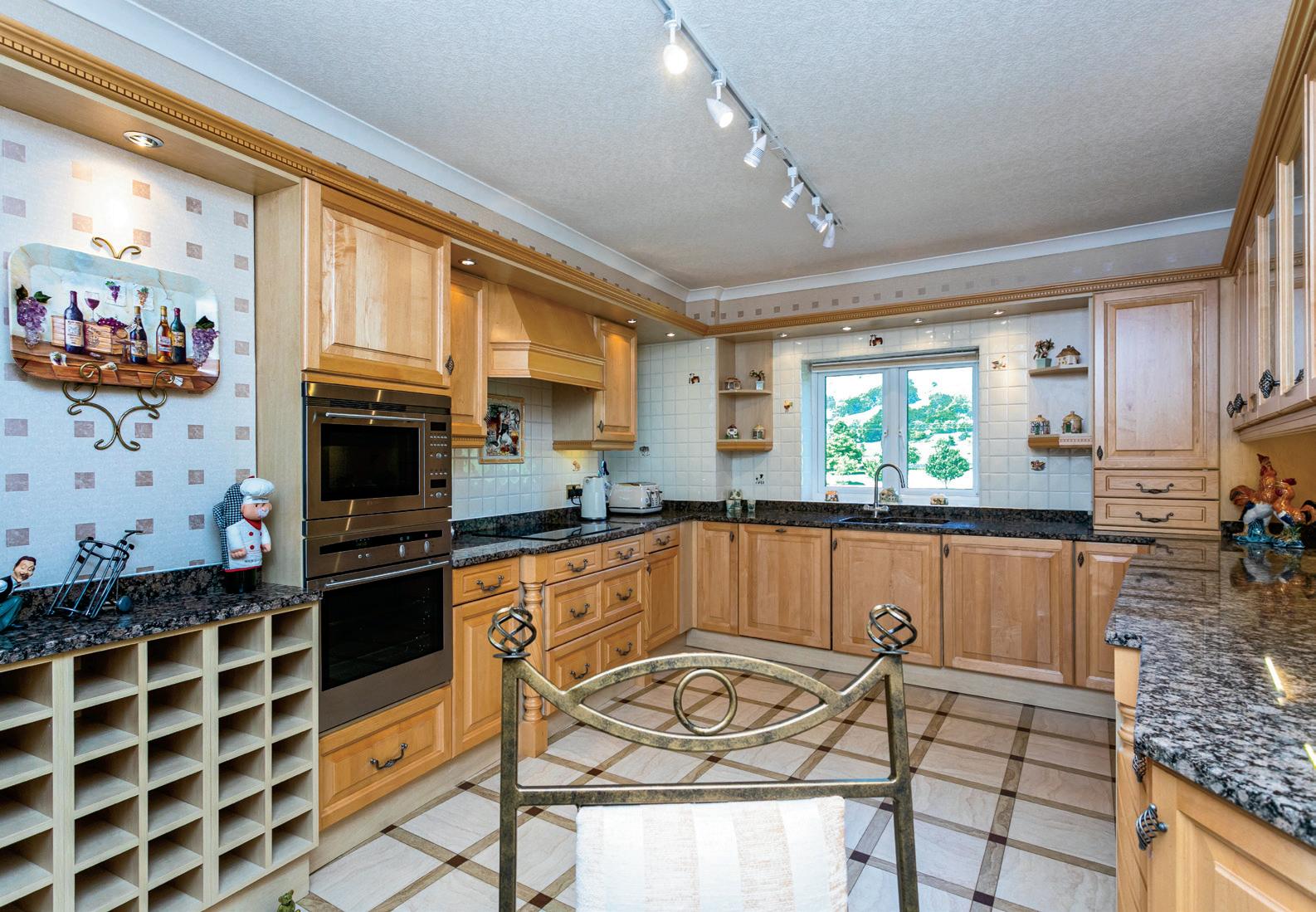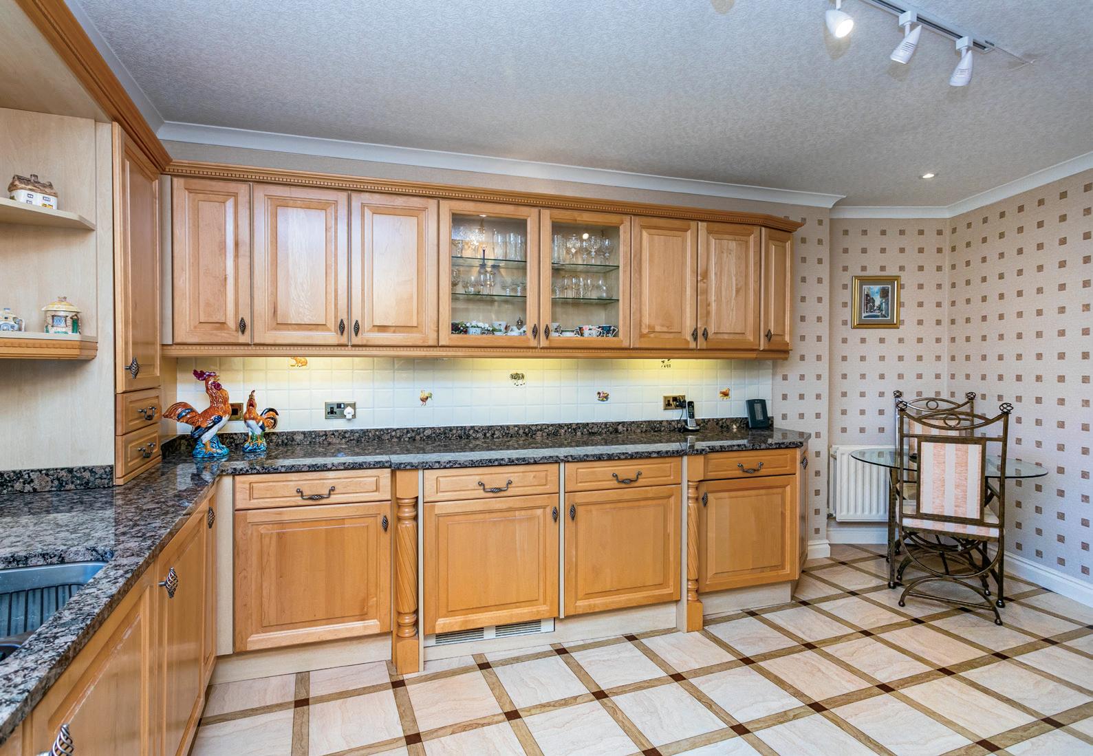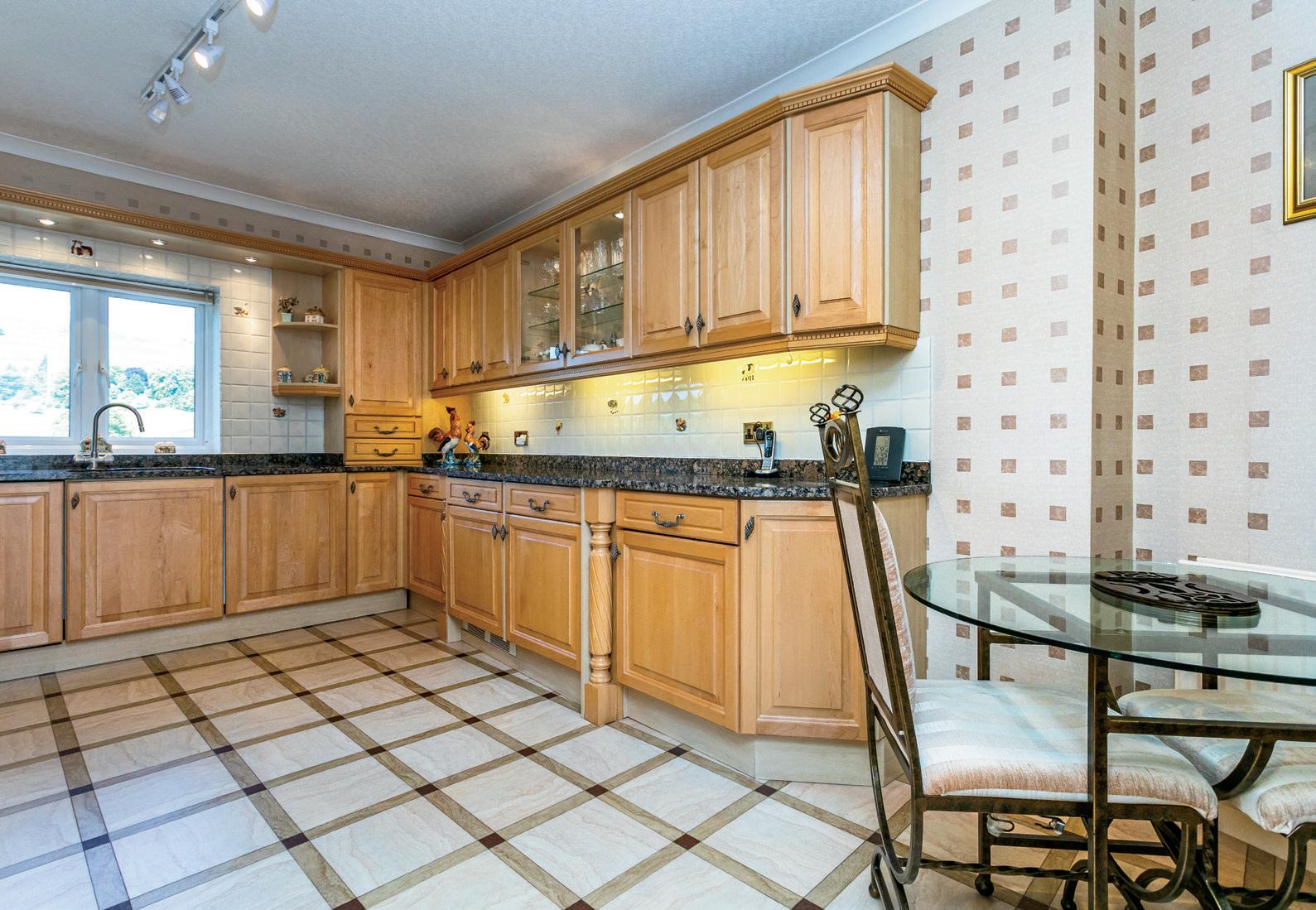 Moving through to the main reception room and your eye is instantly drawn to the picture window, the generous covered balcony with glass balustrade and the view beyond. The glass enables an unobstructed view from the comfort of your armchair. Being covered the balcony has all year round potential and a couple of power points, sitting here (or indeed in the sitting room with sliding doors open) with the sound of the river as a backdrop is an absolutely delightful way to spend time. The kitchen is well fitted and appointed by Webbs (Kendal). Cabinets have tuscan pear wood doors and there are black granite worktops. NEFF appliances comprise freezer, dishwasher, hob and extractor hood, oven and combination oven, the fridge is Liebherr. It’s a good specification with illuminated glazed display cupboards, under unit lighting, a built in wine rack, waste disposal unit and an Amtico floor. The main reception room offers space for formal dining whilst the kitchen provides room for breakfast and informal kitchen suppers.