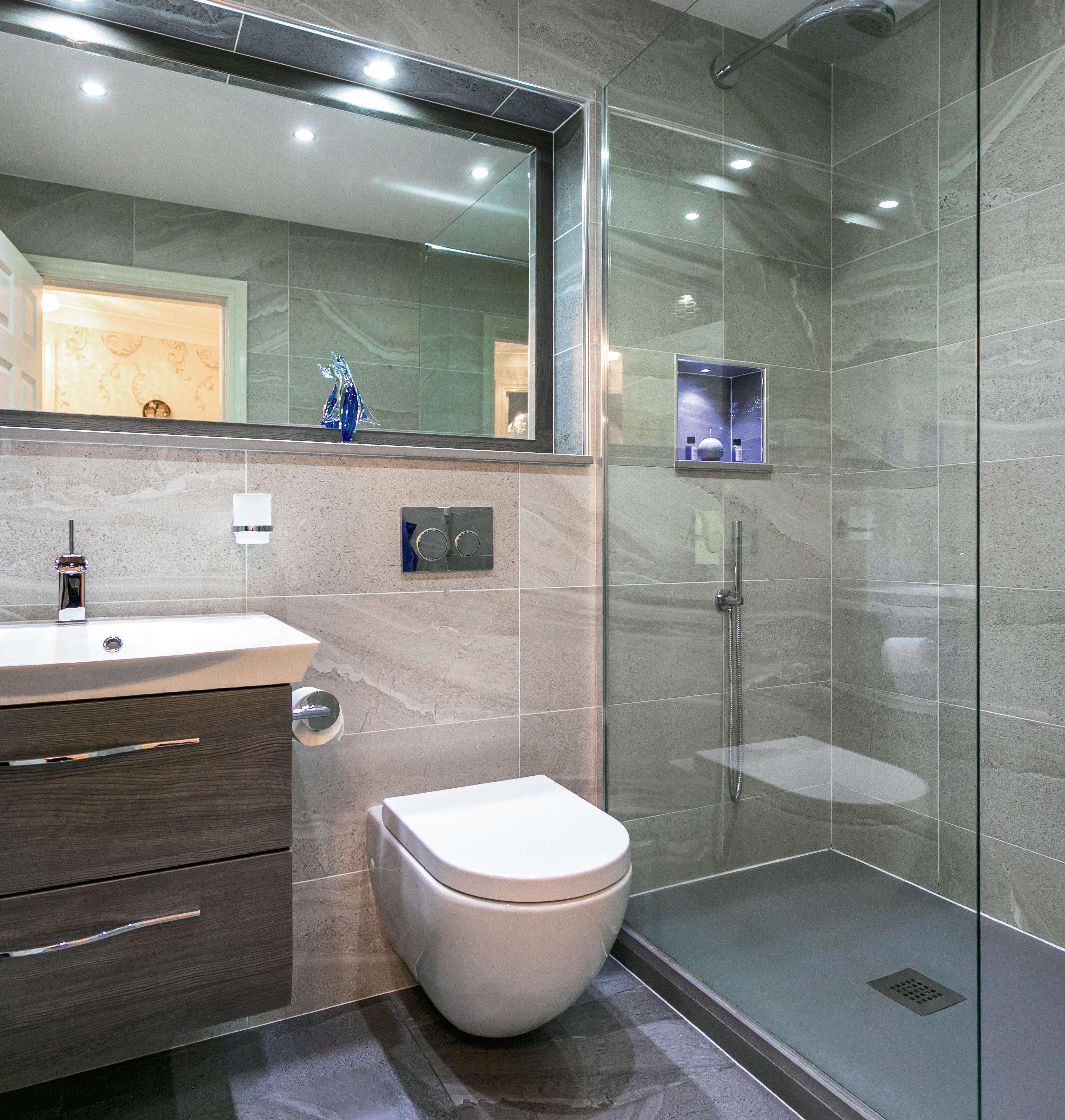 The second and third double bedrooms are also fully fitted and along with the main bedroom enjoy river and country views. These two bedrooms have use of the apartment shower room. Refitted by Aqua Jade (Kirkby Lonsdale) this too is a sleek and stylish room, fully tiled with glass mosaic detailing, the quality appointments include a large shower cubicle with a rainfall head and a second handheld head and both the vanity unit and toilet are floating. Black ladder radiator.