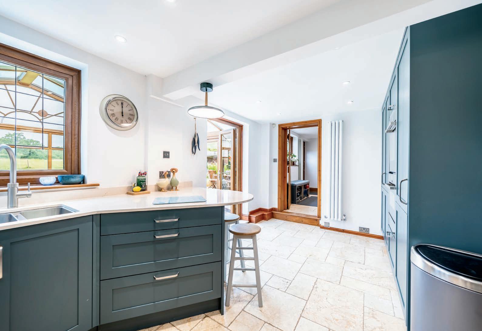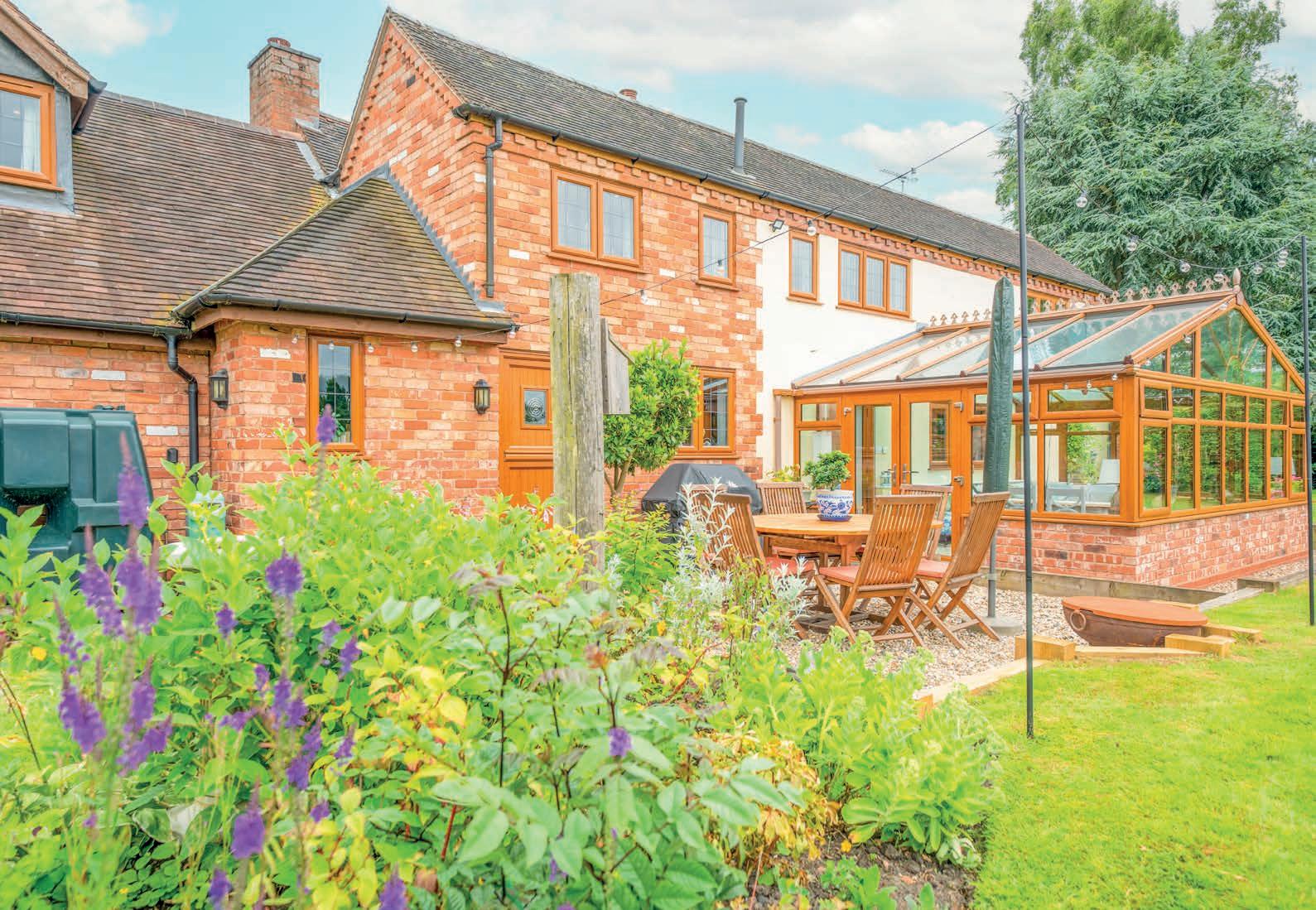 Approached via a generous gravel driveway, Byeways invites you in through an oakframed storm porch, leading to a spacious reception hall with under-stair storage. The dining room, overlooking the front gardens, connects seamlessly to a snug featuring an open fireplace and front-facing window. The charming sitting room enjoys direct access to the side gardens and patio area. The delightful breakfast kitchen offers a superb range of base and wall units, ample work surfaces, a double sink, and a variety of built-in appliances, including a fridge, freezer, dishwasher, induction hob, oven, microwave, and warming drawer. The dining area opens to the conservatory, which provides exceptional views over the gardens and fields.