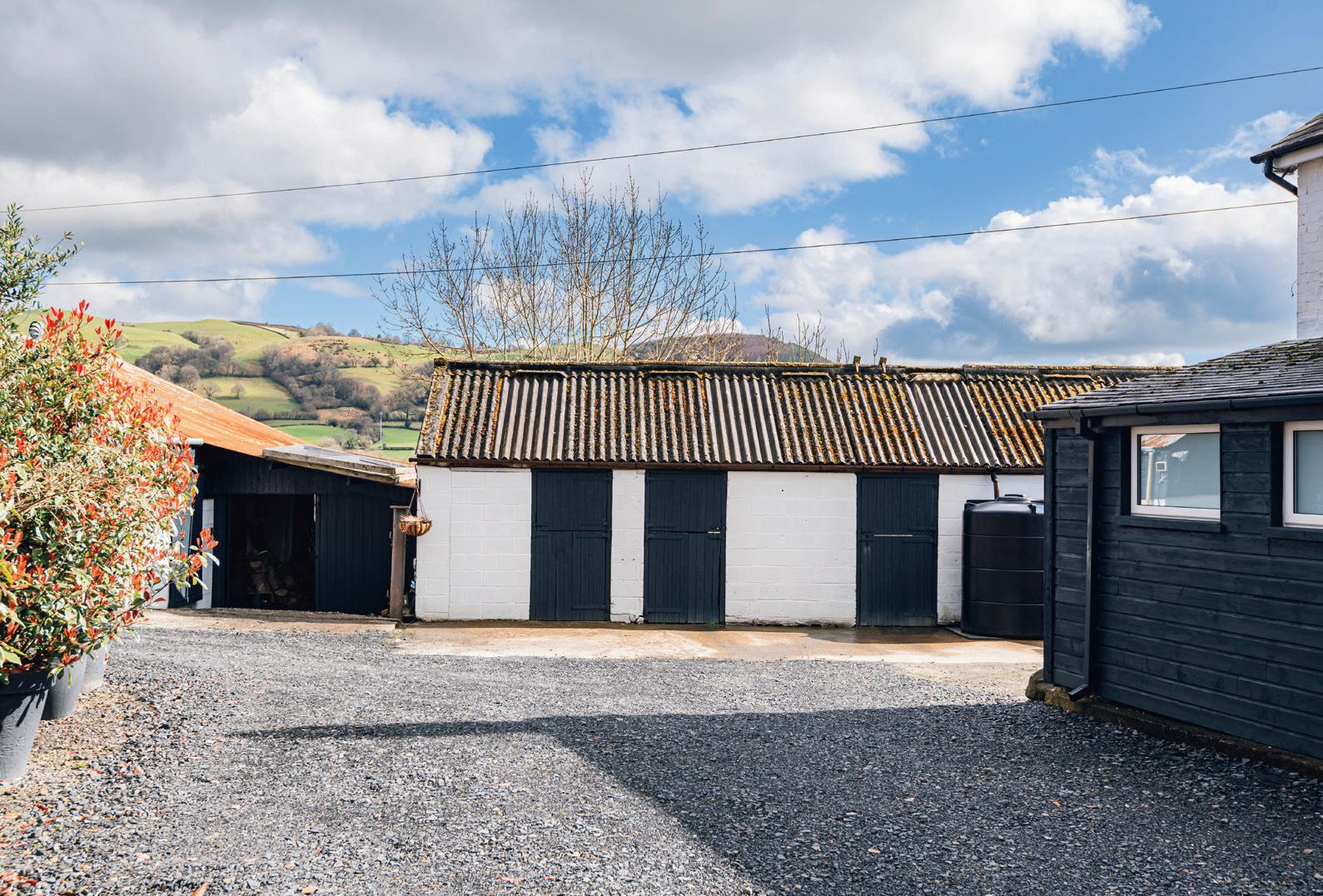 At the front of the property is a gated entrance leading to ample parking and turning space. This area also grants access to a variety of outbuildings, including a woodstore and workshop, former stabling, with additional structures providing extra storage or potential conversion opportunities, subject to necessary approvals.