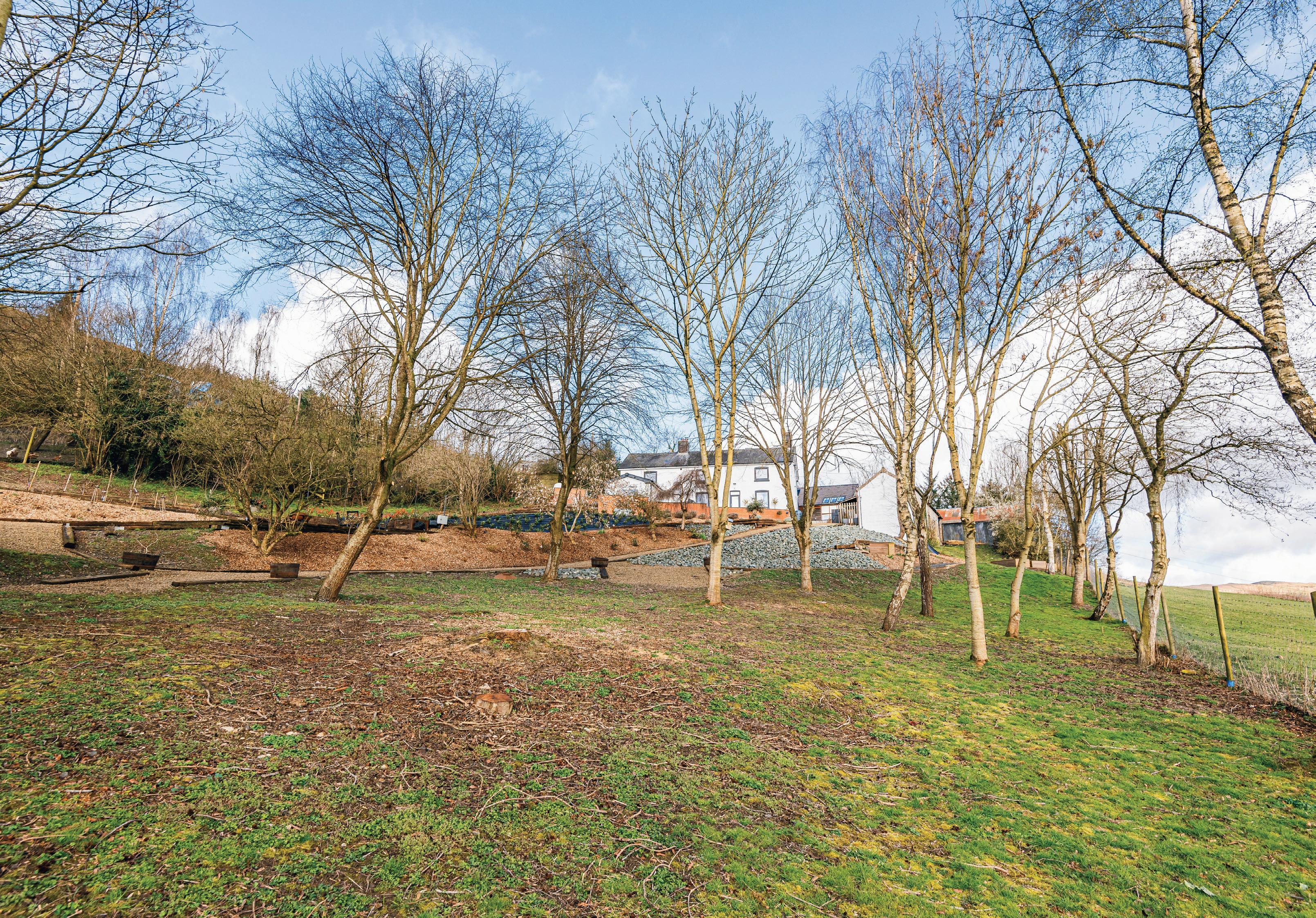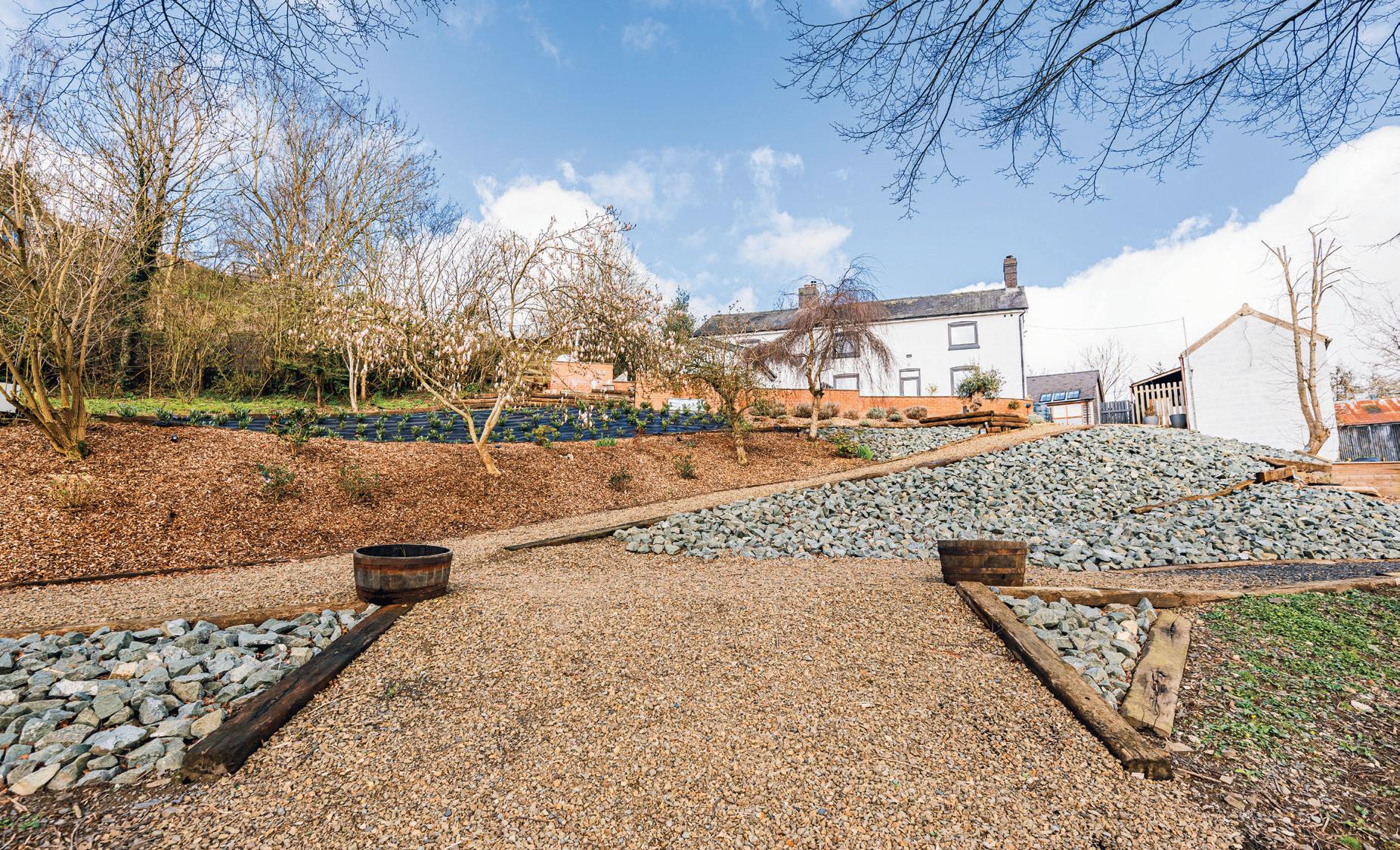Spanning just under an acre, the expansive garden offers something for everyone. A delightful patio, perfect for al fresco dining, is complemented by a wood-fired pizza oven. Meandering chipped pathways lead through flower beds, raised beds, fruit trees and mature trees, culminating in an additional seating area complete with a firepit, all showcasing the picturesque countryside views.