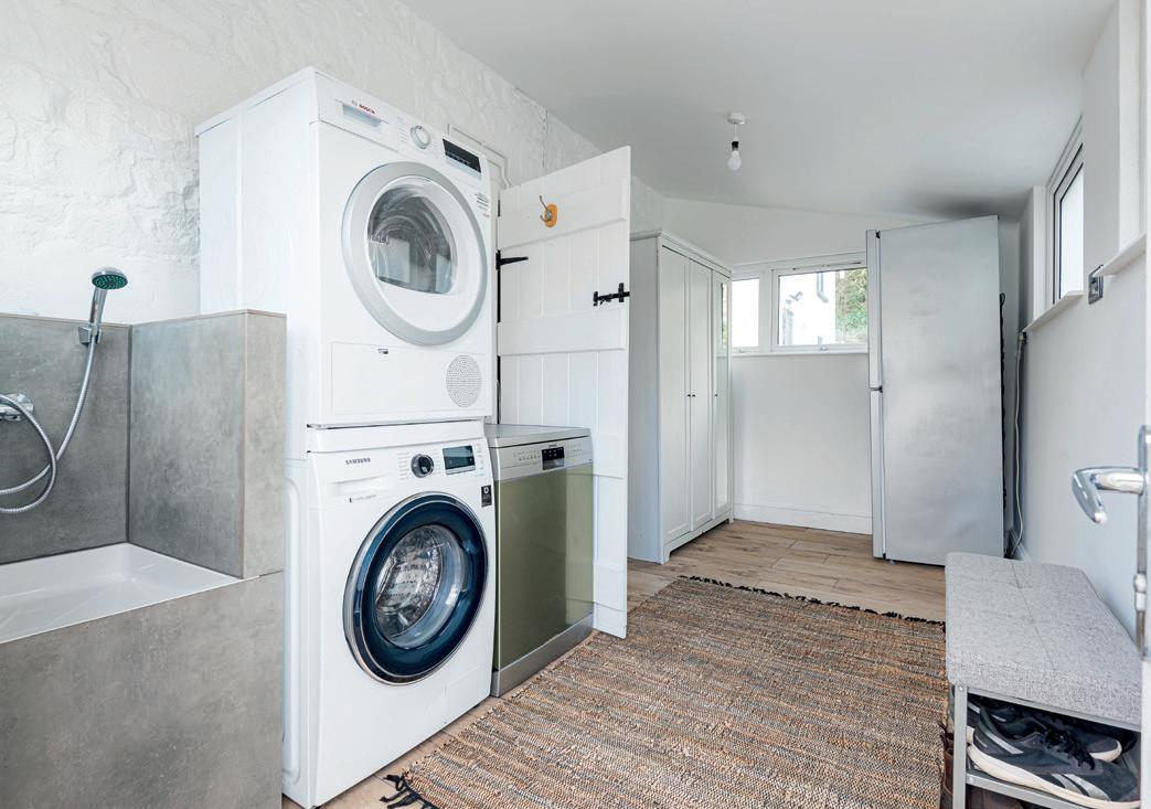Completing the ground floor is a convenient downstairs WC and a utility room providing extra storage and space and plumbing for a washing machine and tumble dryer, a dishwasher and a shower facility for dogs.