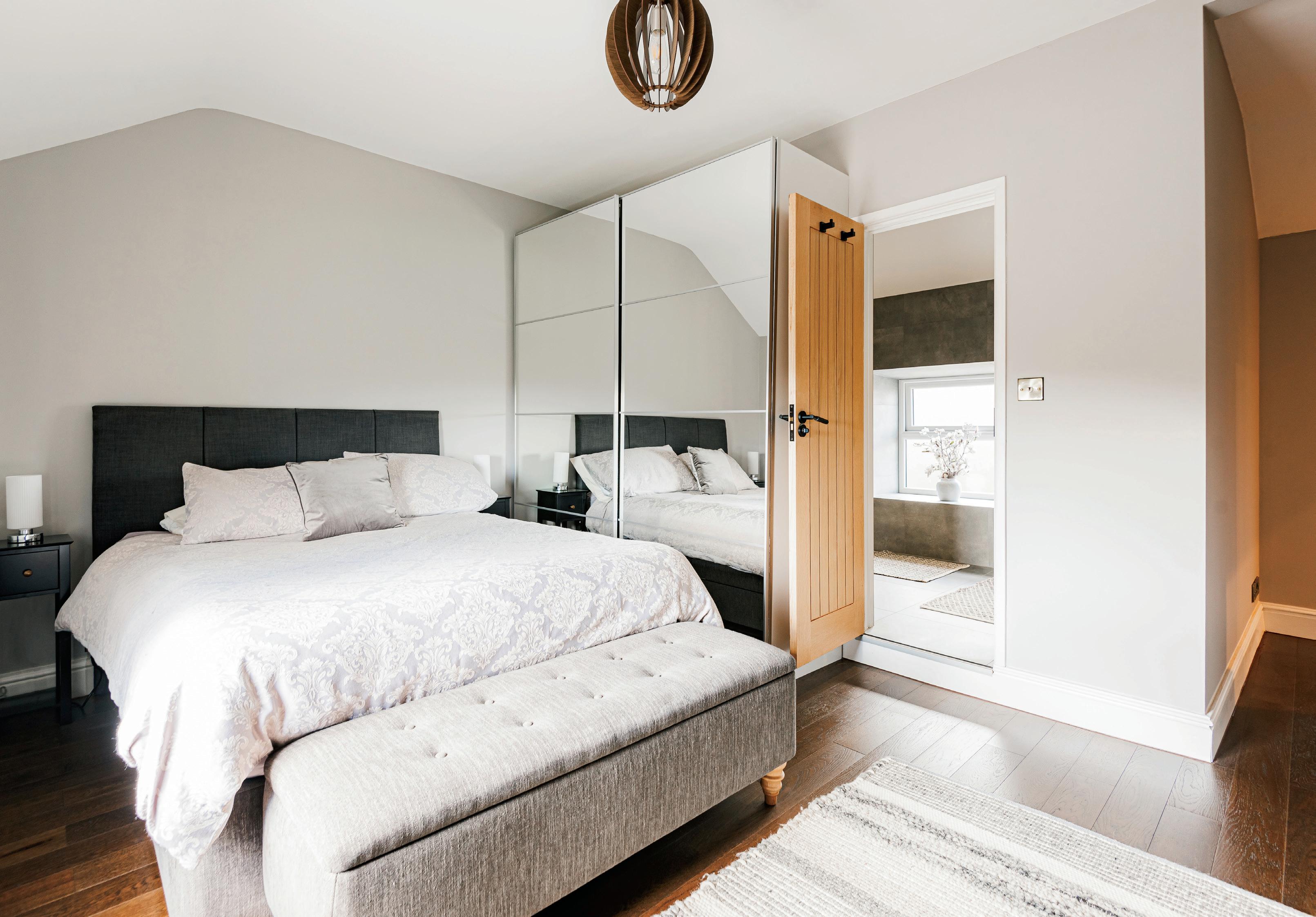 Ascending the stairs to the first floor reveals accommodation which has been thoughtfully designed by the current owner. Three double bedrooms, each boasting modern en-suites with shower cubicle, WC, and wash basin, offer comfort and convenience. Each bedroom also enjoys the magnificent views of the surrounding countryside.