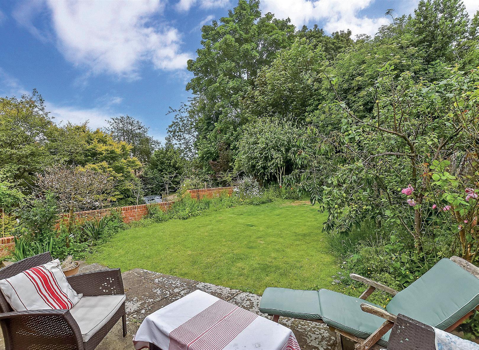 Outside you will find a very spacious paved courtyard style terrace with a charming area designed for al fresco dining and steps up to a secluded patio where you can relax in the sunshine and a surprisingly large lawn bordered by flower and shrub beds backing onto a brick wall. As well as a garage you can also obtain a resident’s parking permit.