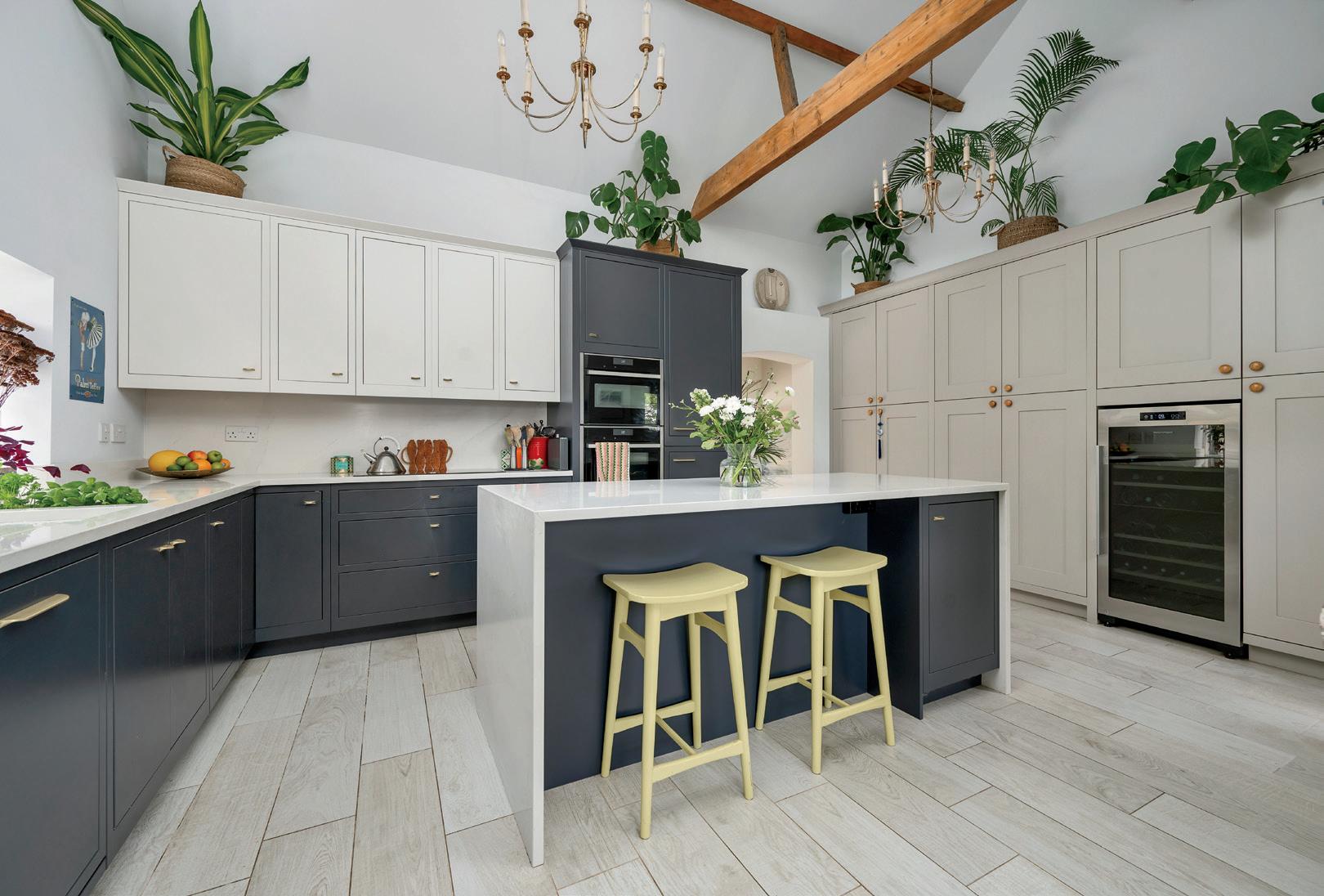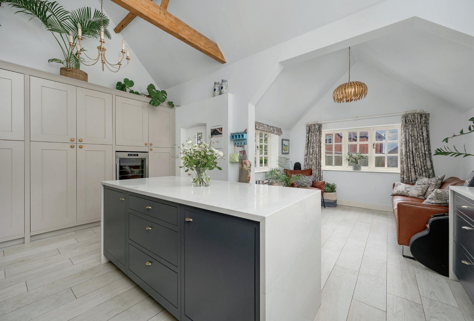 Steps continue up to a stunning vaulted living kitchen which showcases bespoke wall and base mounted units with an excellent range of integrated appliances and central island unit. The kitchen extends to a further family/breakfast area providing views to the front and side. The ground floor accommodation is completed with a guest cloakroom and utility area.