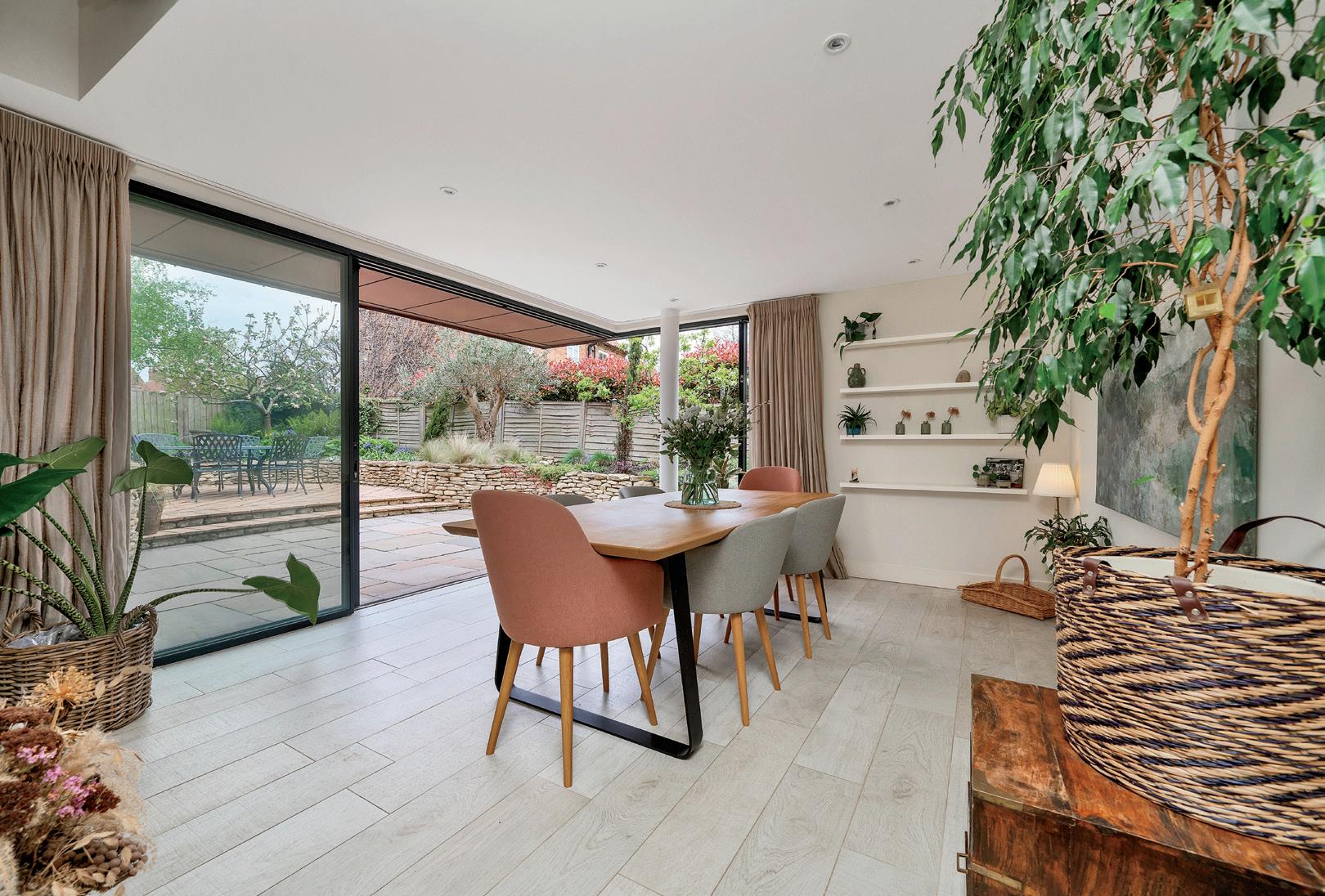 To the other side of the entrance hall is a further generous reception room, currently serving as a cinema room, which has original features and practical under-stair storage. As you enter the rear of the ground floor accommodation opens to the contemporary extension providing a stunning dining area, the showpiece of which is without doubt sliding pocket glazed doors to two sides providing access to the rear gardens and patio.