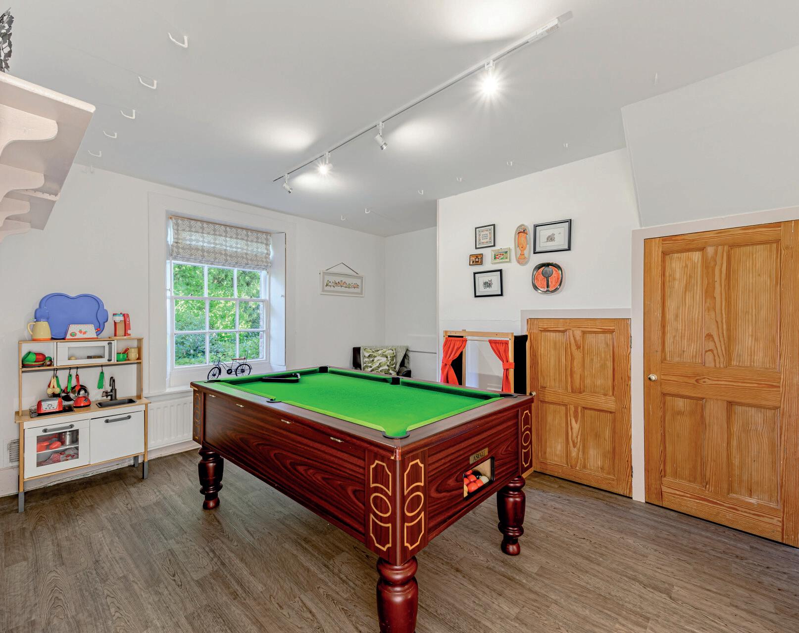 At the end of the hall, you are greeted by the games room. This space, currently home to a pool table, serves as the perfect playroom for children and adults alike. This would also make a perfect second living room if required. A back staircase in this room gives access to upstairs. Access from here is also provided to the office or reading room down a small passage. This room benefits from a French door that open onto the courtyard. An original fireplace still retains a gas feed should you wish to reinstate a fireplace. A generous storage room is also located here.