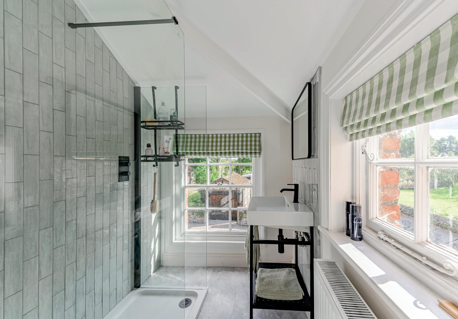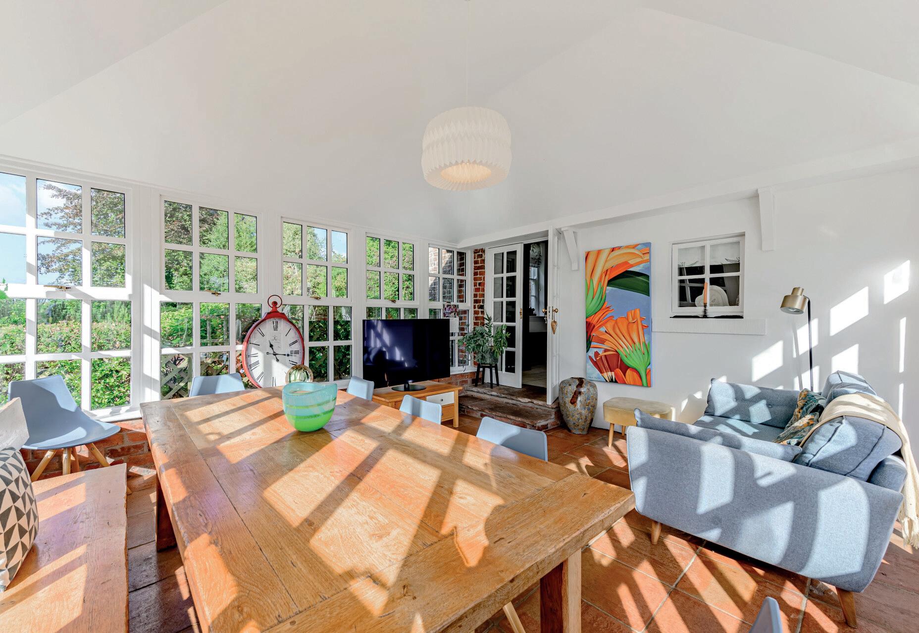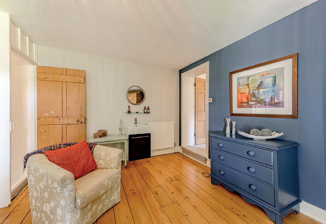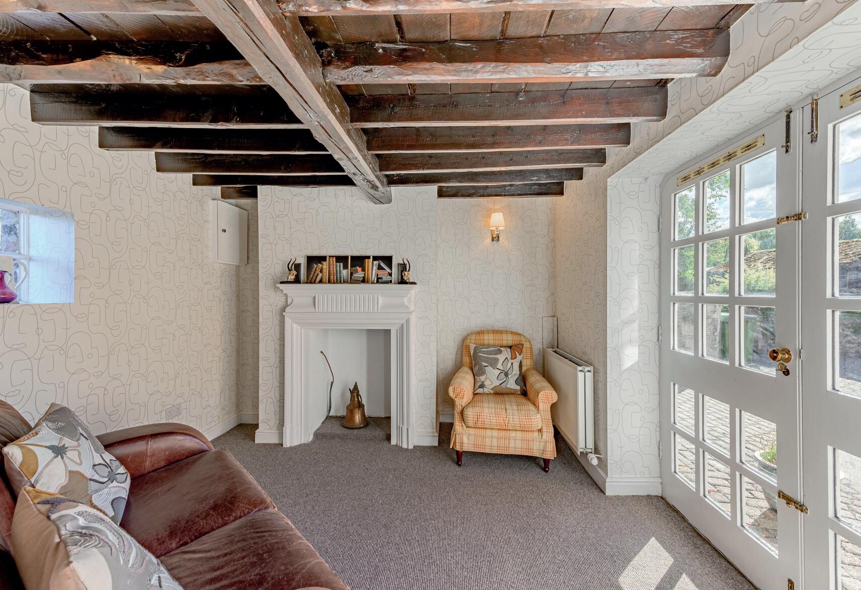 The kitchen is a beautiful example of a bespoke, traditionally styled, country kitchen. The solid wood, shaker style units where designed and installed by locally renowned company, Town & Country and benefit from high end accessories such as a large Belfast sink, Quartz and solid oak worktops and a gas Aga cooker with twin hobs and two ovens. Matching storage cupboards, painted in a contrasting colour, have been built to the external walls with the properties name scribed into the top to enhance the bespoke finish. The garden room sits to the side of the kitchen and is accessed via a set of double doors. This space makes a fantastic dining room or day room, offering a panoramic view of the gardens.