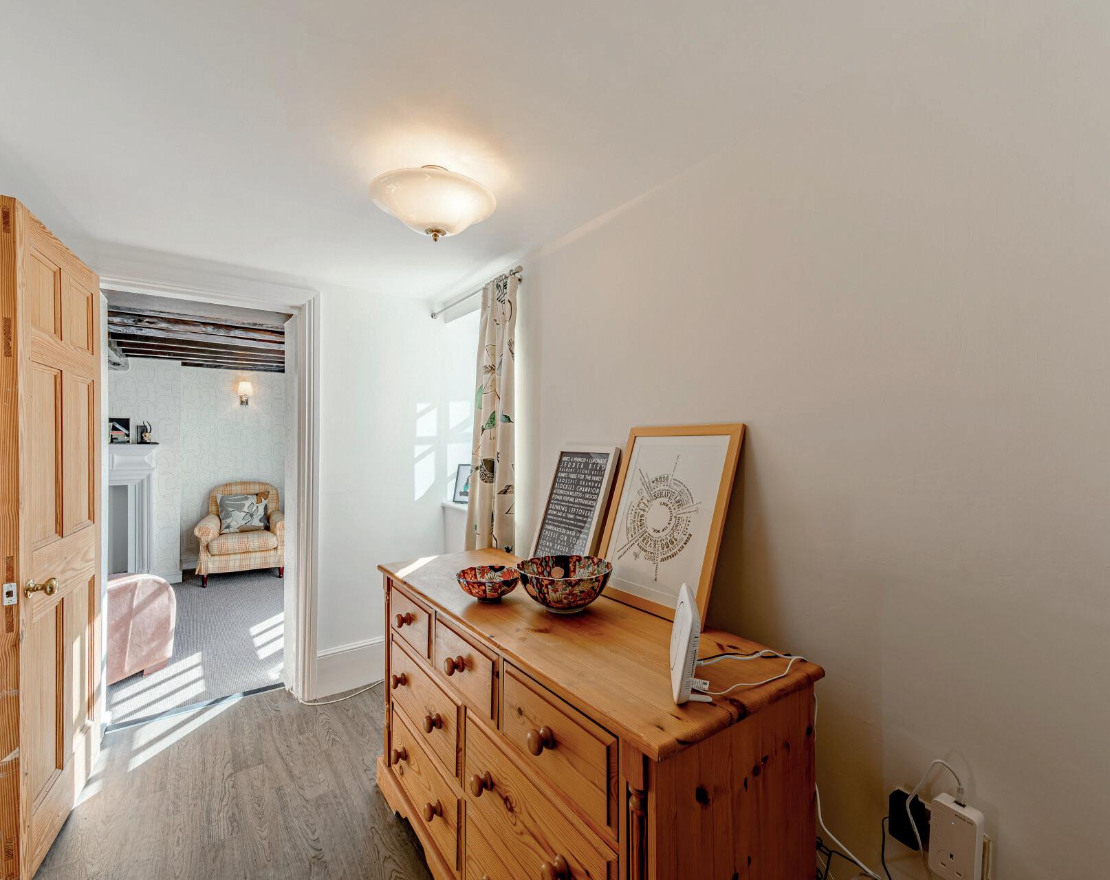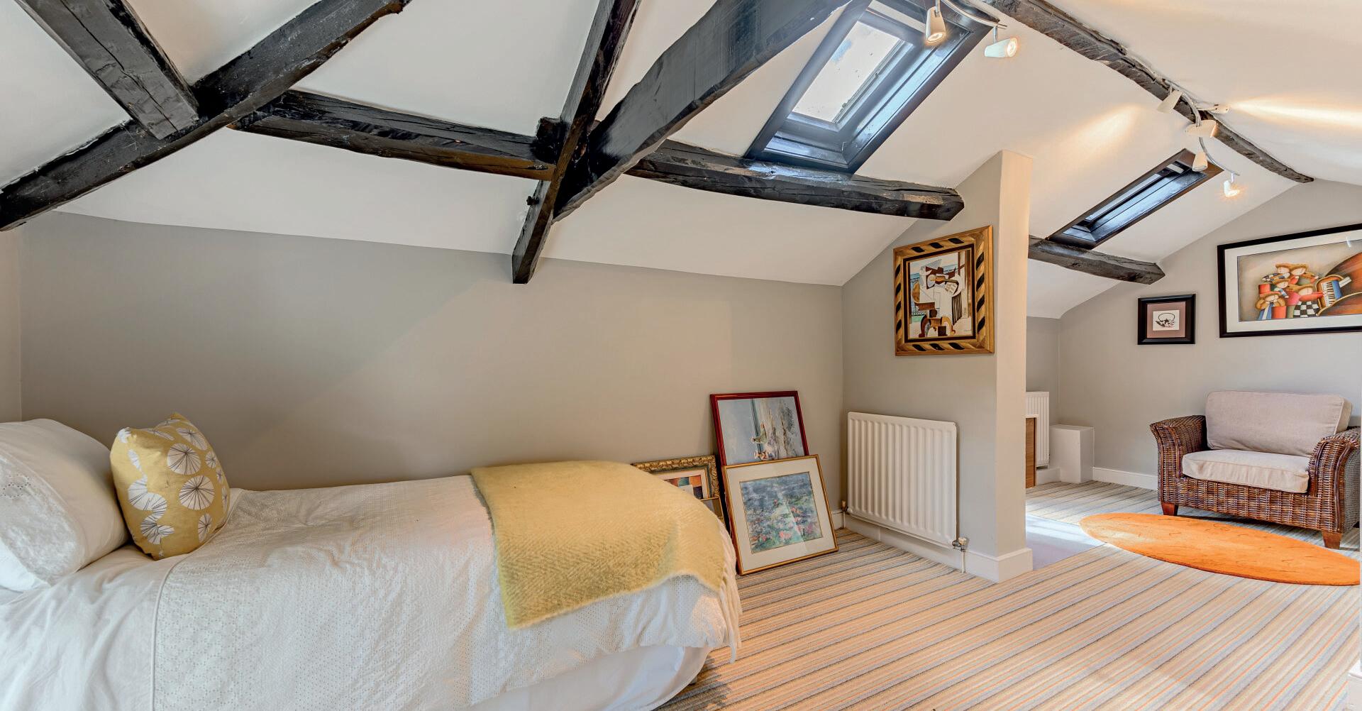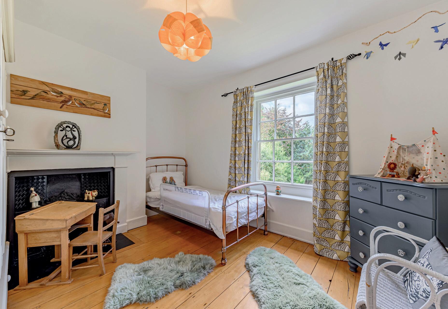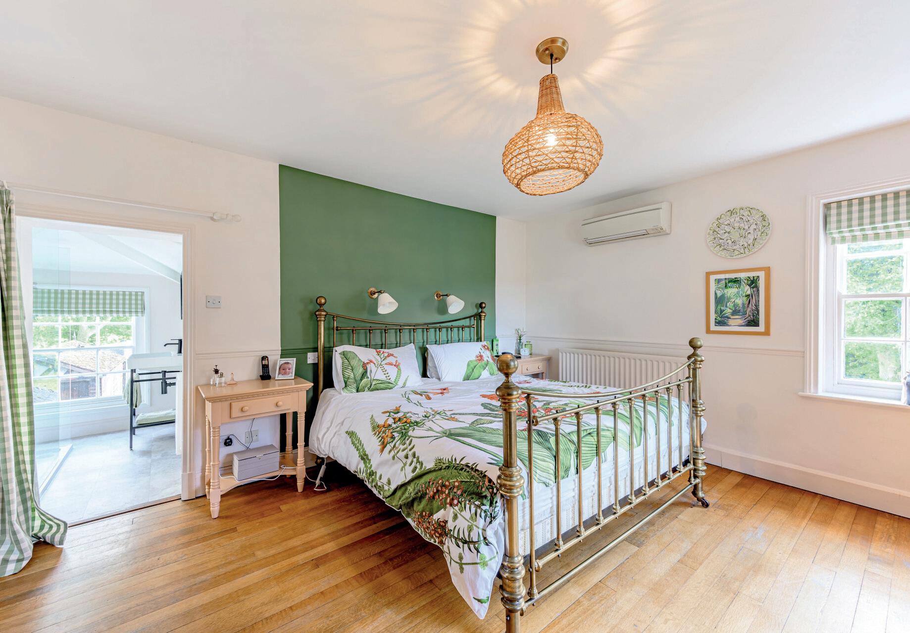 Under the main staircase you will find a small wine cellar which sits below ground level. The main staircase has been sympathetically modernised, blending a modern styled carpet with the original banister and spindles. The landing upstairs is spacious and light thanks for plenty of windows. Upstairs benefits from six bedrooms, each with its own style and personality. The family bathroom benefits from having the toilet separate making it useful for a growing family. Several bedrooms benefit from having a sink and vanity unit with the primary bedroom having its own shower. The primary bedroom is spacious and light, offering views of the garden of two sides. An original fireplace has been retained as well as a traditional storage cupboard. A heating and air conditioning unit has been fitted in this room for the yearround comfort.
