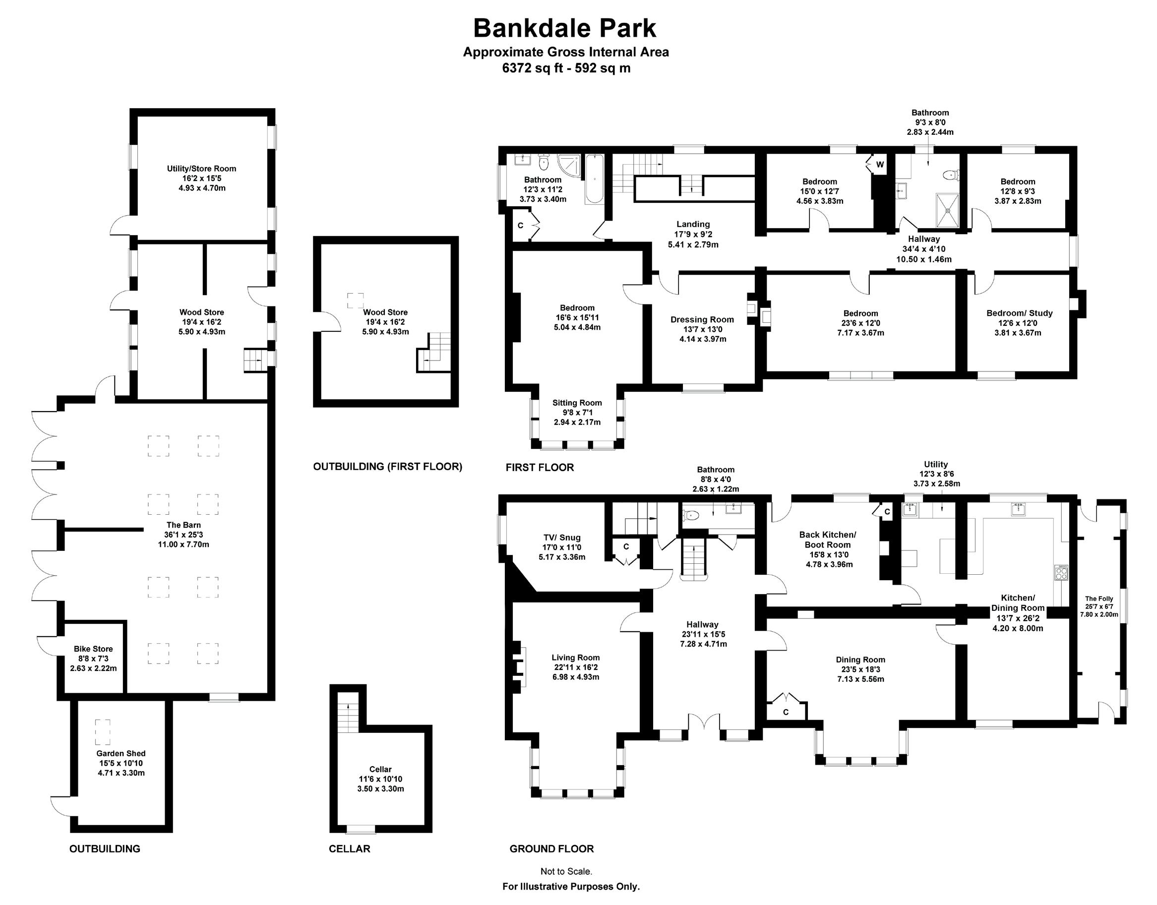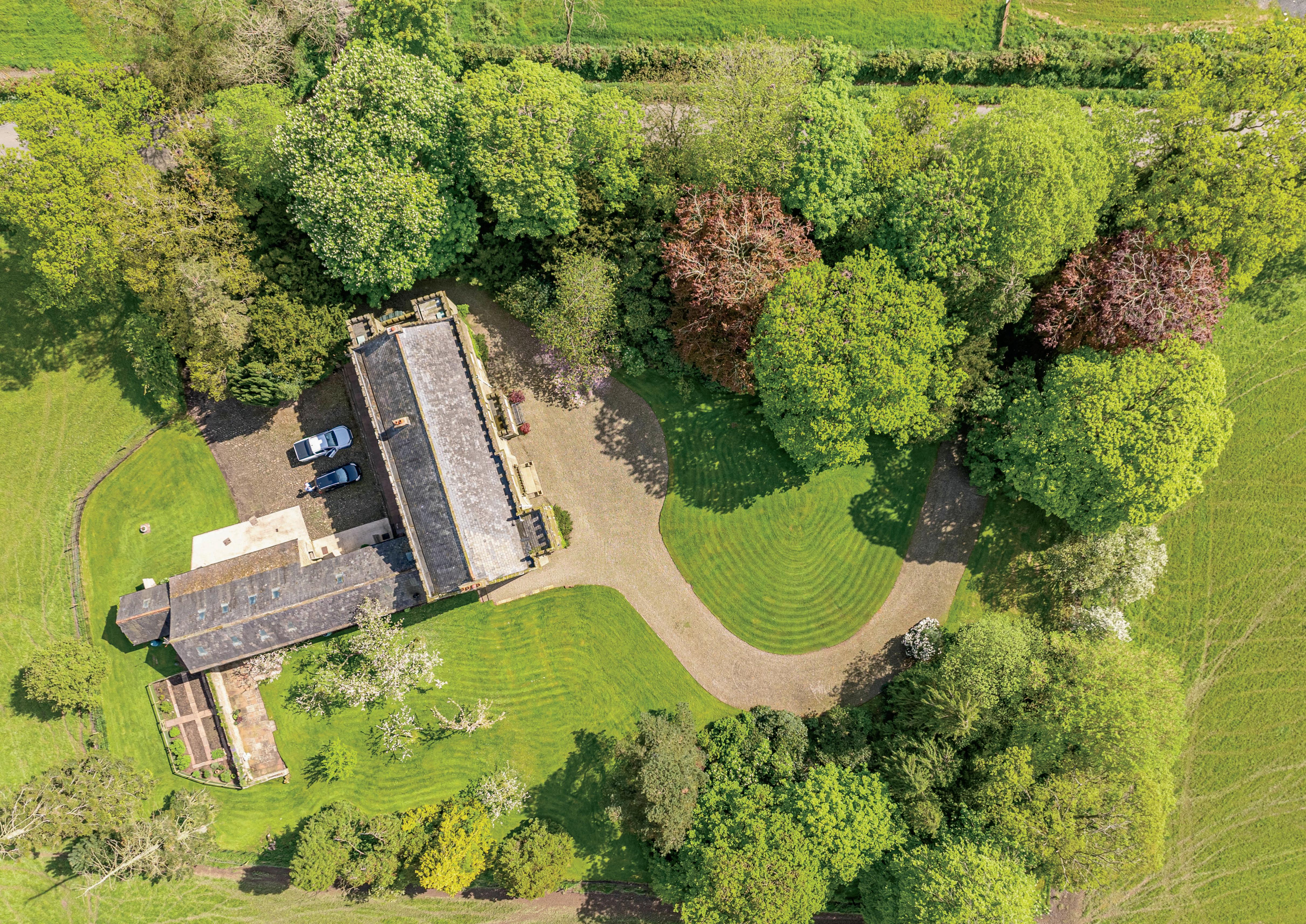 Externally the property sits in an easily maintained well-manicured garden of 1.3 acres, with a stone gated entrance leading onto a classic curved gravel drive to the front of the property. The rear of the property has a separate gated entrance with ample parking and access to the barns and outbuildings. There is a wealth of mature trees, an orchard with plum and apple trees and a vegetable garden. Bankdale Park looks onto the 10-acre field that wraps around the property, providing delightful views onto the land and the countryside beyond. There are several outbuildings, one being closest to the main house has power and is a useful and extra utility space. A second barn, the original cattle shed is boarded with stairs to the first floor adding additional storage. The main barn previously had planning permission for a three-bedroom house, now expired. This is currently used for storage and garaging for three cars. This tremendously versatile building would offer real development potential with the correct planning in place.
