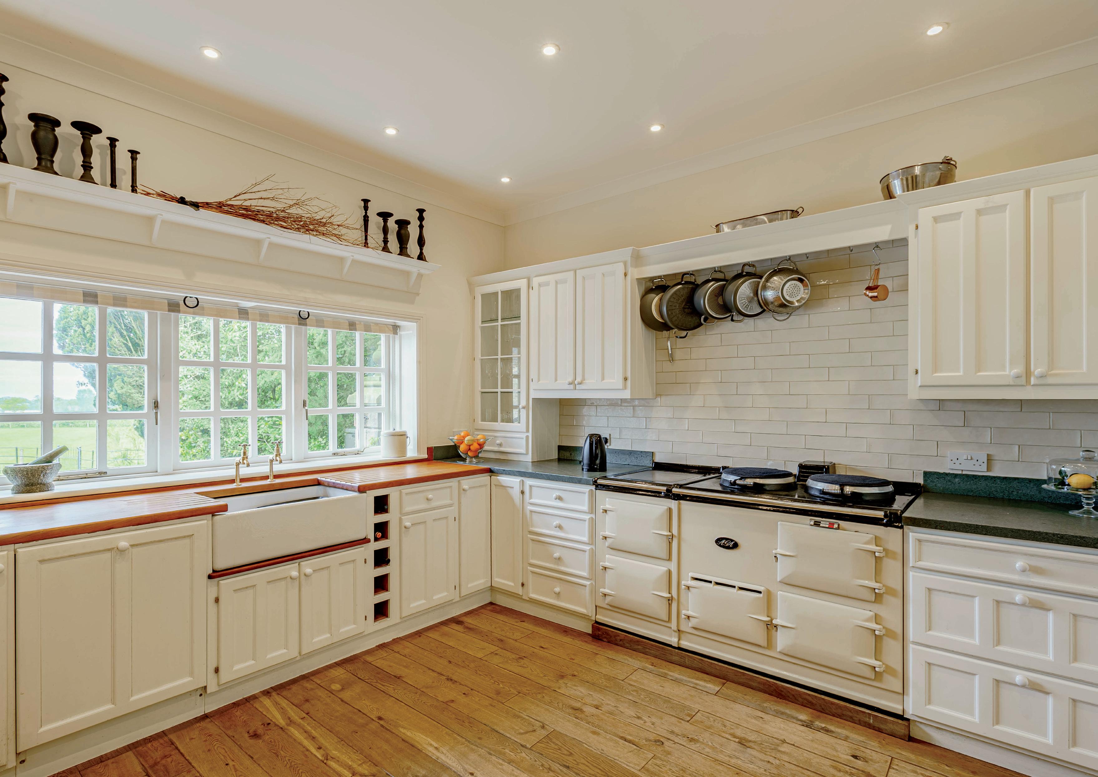 The front entrance leads directly on to a grand and elegant reception hall with period staircase, radiators and original Victorian tiled floor leading to the half landing and stained-glass window. From the hall are three main reception rooms. The drawing room is tastefully decorated, sizeable with a generous bay window looking onto the front lawn with quality ornate mouldings and period features including fireplace and Jotul wood burner. There is a generous and elegant formal dining room with a second bay window and original built in display cabinets and solid oak floor. From the hall is an additional reception room, currently as a tv/snug and a tastefully fitted downstairs cloakroom/WC. From the grand hallway there are steps down into the cellar. The rear entrance to the property opens into the original back kitchen now a practical boot room full of delightful period features including a stone flagged floor, meat hooks and original press cupboards either side of the sandstone fireplace complete with a second Jotul wood burner. Leading from here is the utility room, also with sandstone flags, ample work surface, shelving and built in cupboards, there is plumbing for white goods and a generous Belfast sink. The kitchen is characterful, bright and spacious with oak floor and windows to both the front and rear of the property. It has a range of floor and wall mounted cupboards with mixture of Kirkstone Slate and wooden work surfaces. There is also an integrated fridge, dishwasher and a four oven, oil fired Aga with two cooking plates and a warming plate. The kitchen opens into a bright and airy informal dining room with window onto the garden.