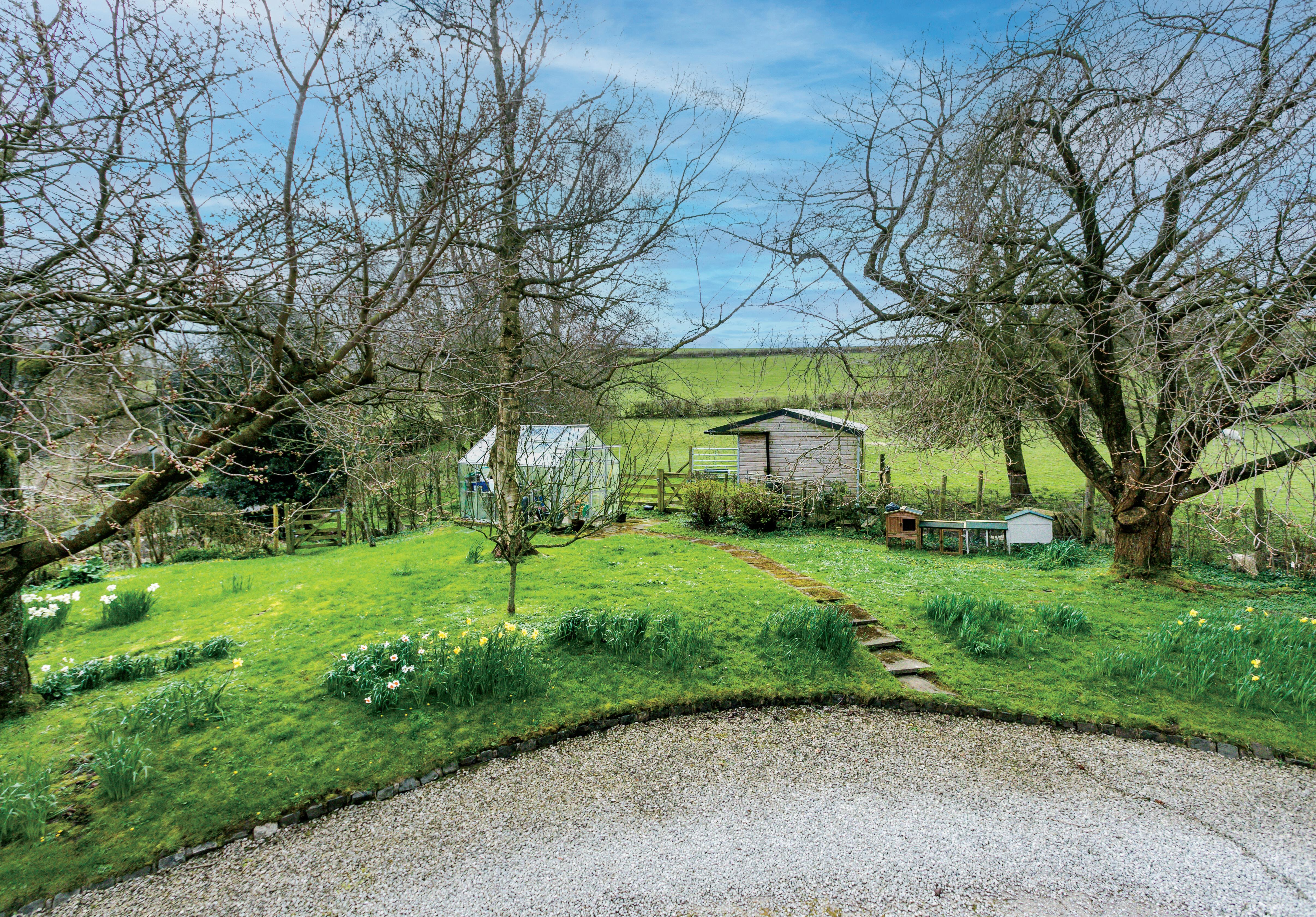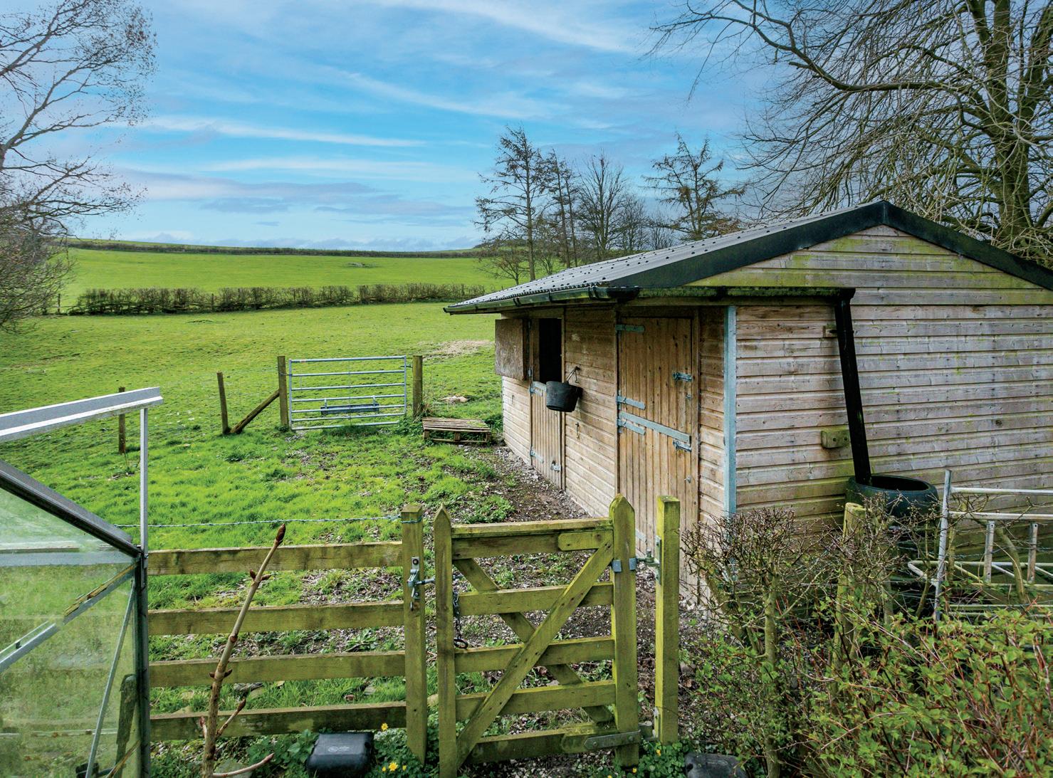 The attractive gardens lie mainly to the south and west of the house and enjoy a sunny aspect, great privacy and also super open views. Well stocked and meticulously tended they offer seating areas, beds and rockeries, lawns, shrubs and trees. An adjoining paddock has a wooden stable and there’s a greenhouse for the green fingered.