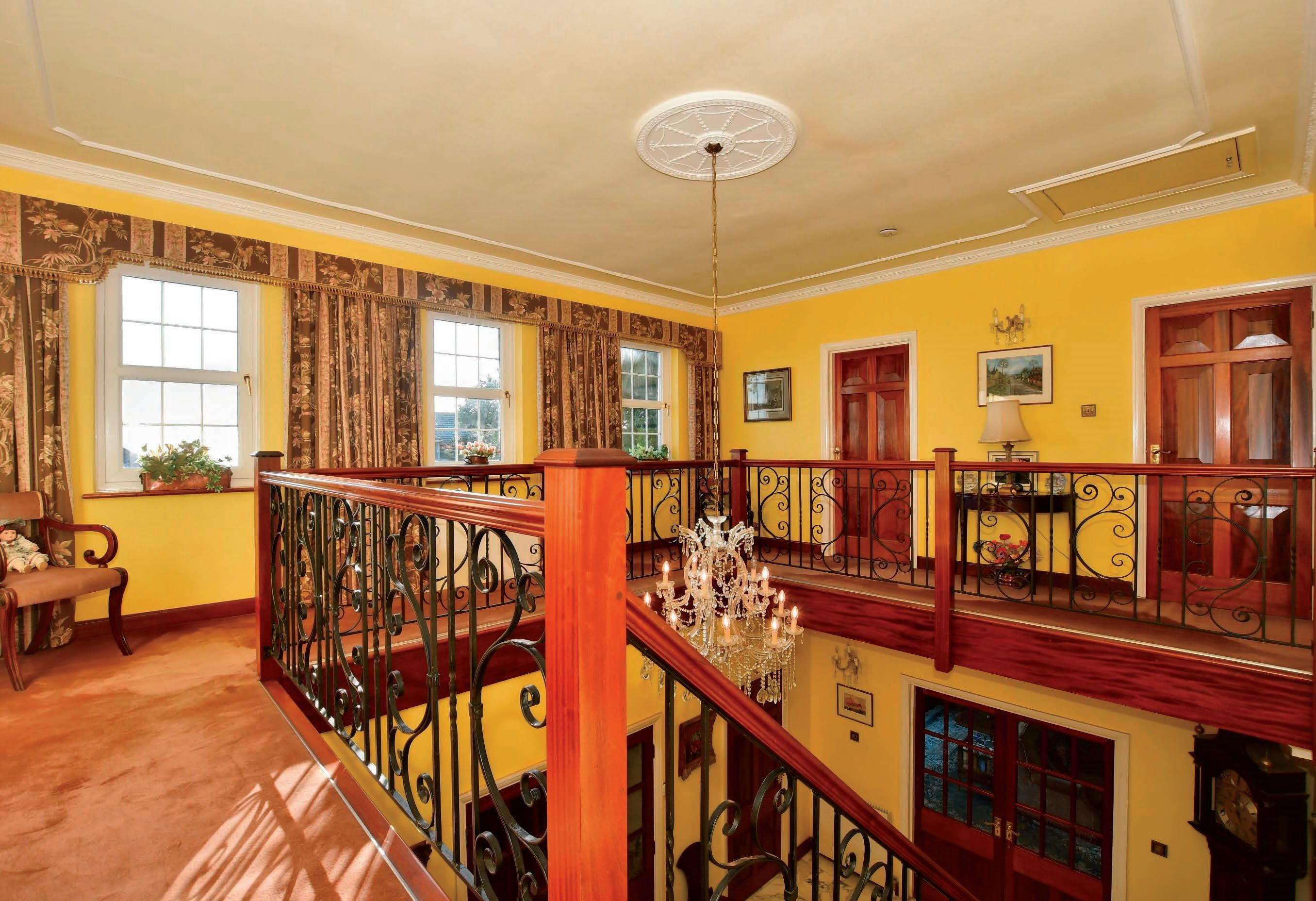 There are numerous and impressive internal features that make this place not only unique but emphasises the exceptional quality of the property. Virtually all the doors are solid mahogany, most of the floors are solid wood and the ornate plaster coving and ceiling roses in many of the rooms are hand crafted. Nowhere is this better illustrated that in the vast and awe inspiring double height entrance hall with its Italian Cararra marble flooring, wrought iron and wood staircase leading to a three sided wood and wrought iron galleried landing with a large chandelier hanging from a central ceiling rose.