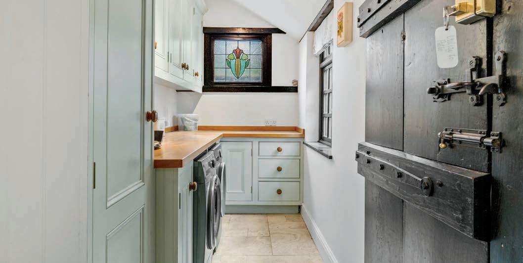The kitchen is a real showstopper; its high vaulted roof is fully glazed and brings in an incredible amount of light. Even on the dullest of days, this room will be light and bright! The fitted kitchen has a timeless traditional style with tiled splashback and an Aga multi-style oven. A central island, a colour matched fridge freezer and under floor heating all make this sociable space very comfortable and easy to spend time in.