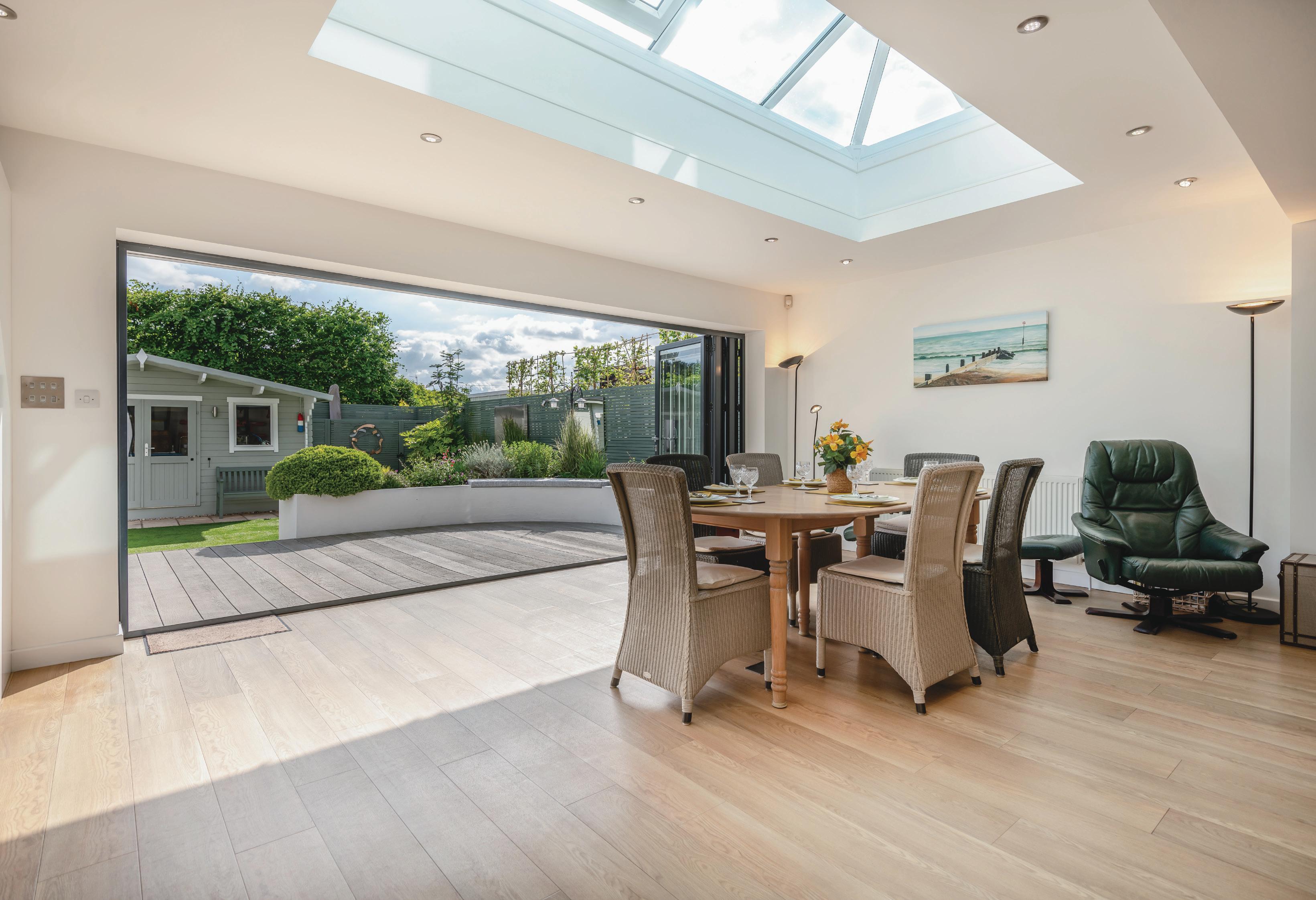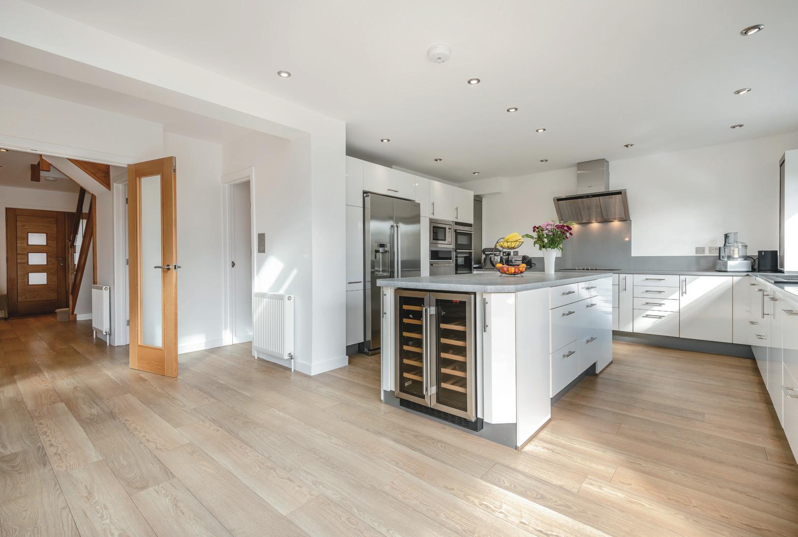 Entry via front door in to lobby, with coats cupboard and further door leading to bright and airy hall, providing access to primary ground floor accommodation. To the rear is a stunning open plan kitchen/ living area. A beautiful space for entertaining, with a glass lantern roof, and bifold doors to the rear, ensuring an abundance of natural light. The kitchen has a plenty of eye and base level units, with worktop over, a central island with breakfast bar, and a range of high-end integrated appliances.