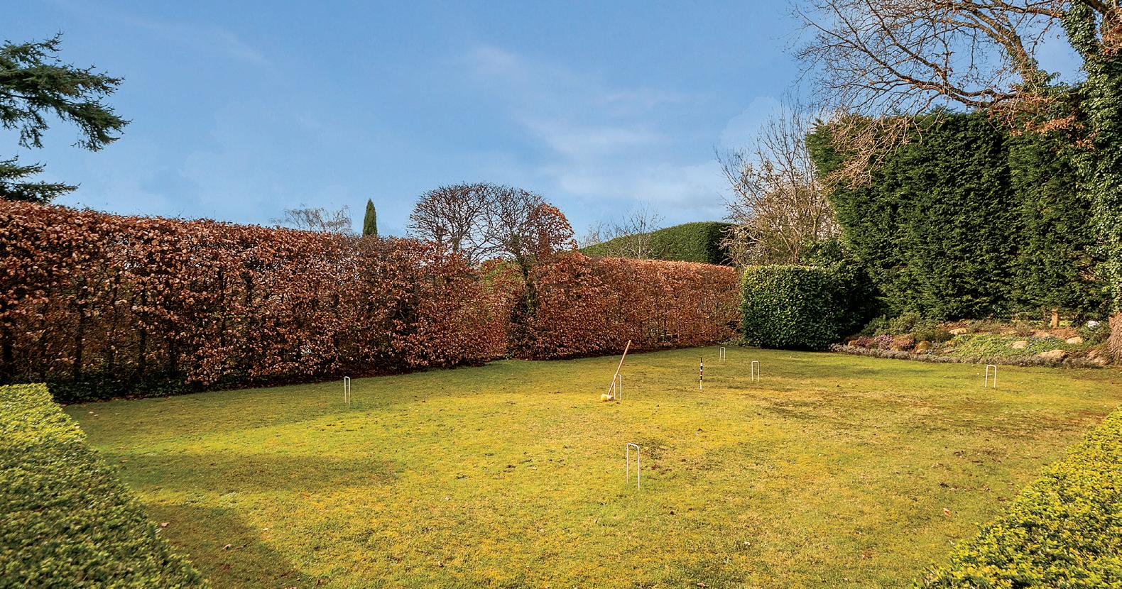 The garden of approximately one acre is one of the true highlights of Sevenacres. Being set back and elevated, it has a wonderful outlook and truly feels like a private, safe and tranquil space. Off the Orangery is a paved area which is great for bbqs and entertaining. It leads on to the croquet lawn and from here an archway through the Beech hedge opens onto the main garden.
