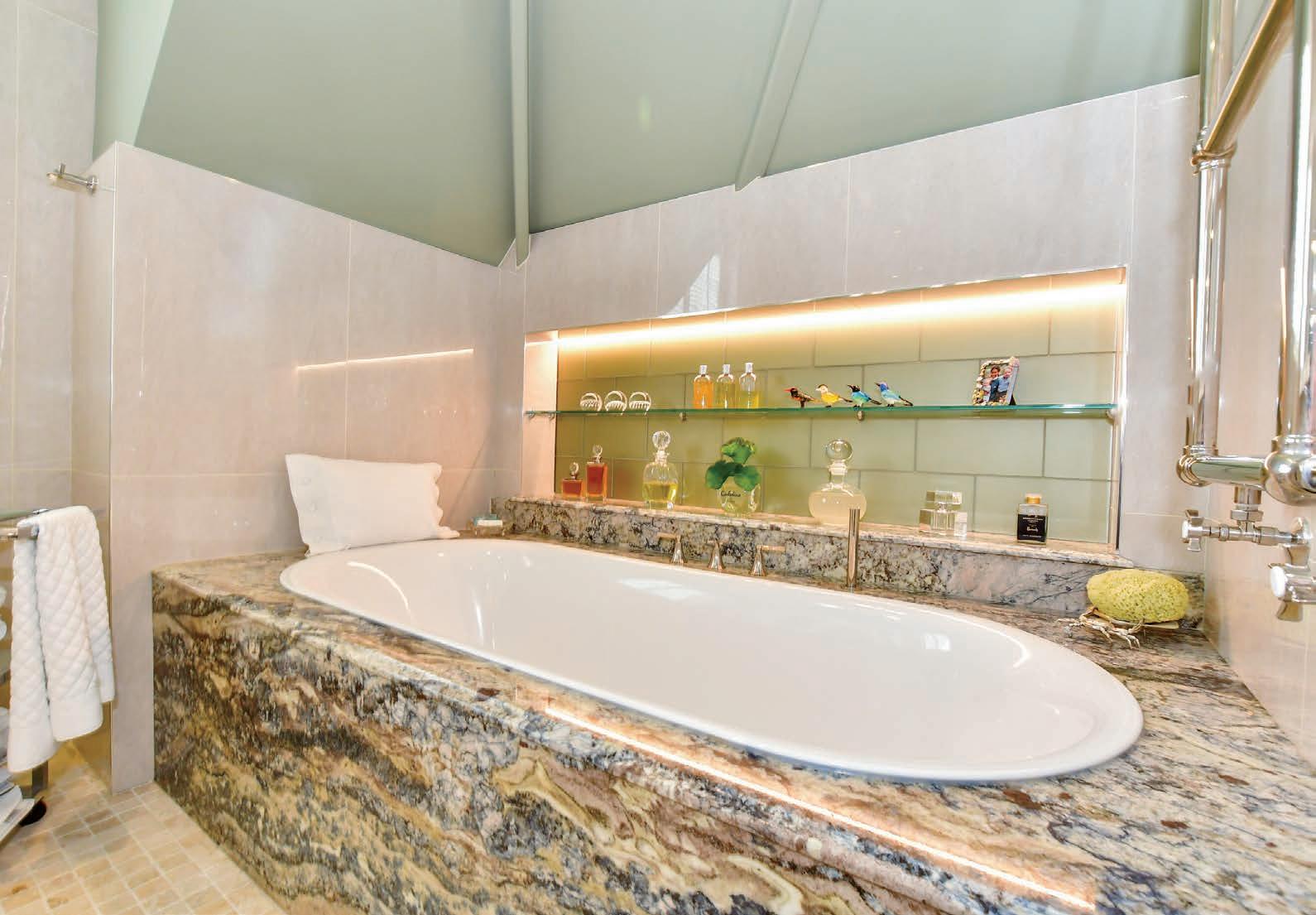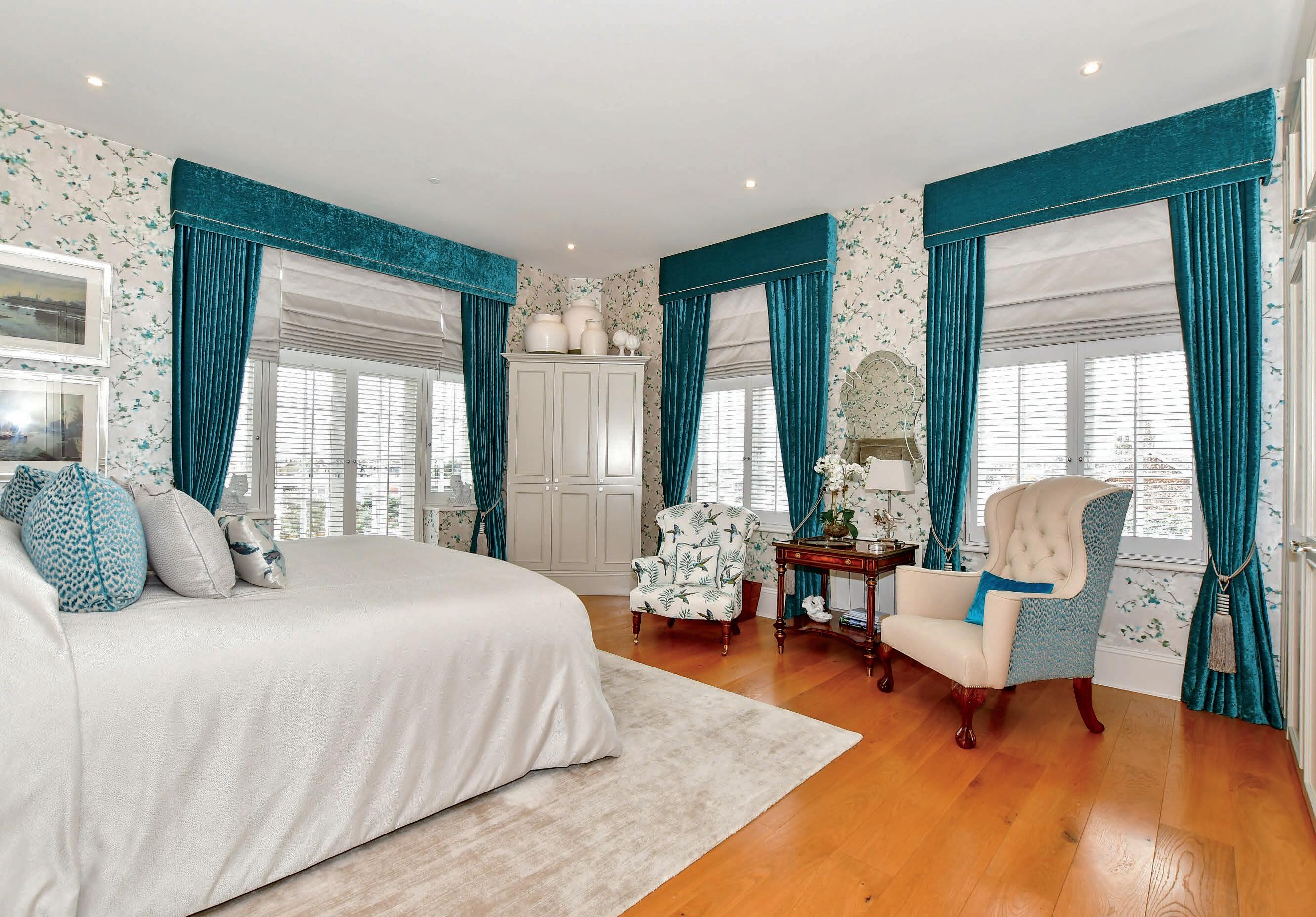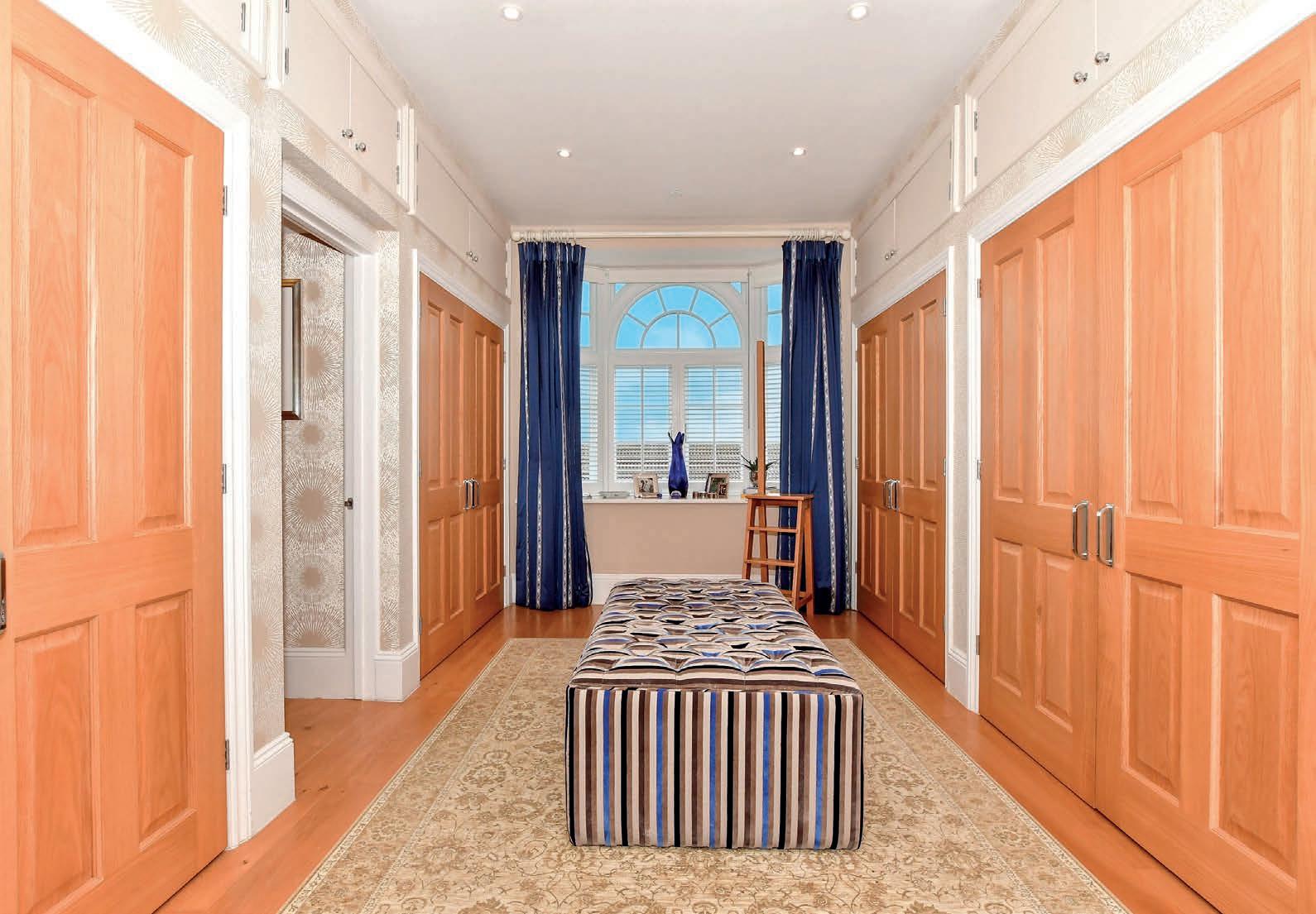 The main suite takes over the entire second floor and is exceptional. A door from the U-shaped galleried landing opens into the vast dressing room with fitted cupboards on both sides and access to the gorgeous triple aspect bedroom with a modern fireplace, automatic window blinds, French doors to a balcony where you can sit and admire the view or, if the weather is inclement, you can just lie in bed with your morning coffee but still be able to watch the ships passing by. On the opposite side of the dressing room is the luxurious bathroom with furniture, sanitaryware and accessories provided by Bette, Grohe and Porter that includes an oval bath with a Blue Azzurite granite bath surround, twin vanity basins with mirrored wall cupboards above, a wet room and French doors to another balcony. While an archway and stairs from the landing lead up to two further double bedrooms on the top floor with en suite walk-in showers and creates an ideal ‘hideaway’ for kids, an independent space for a teenager or perhaps staff quarters.