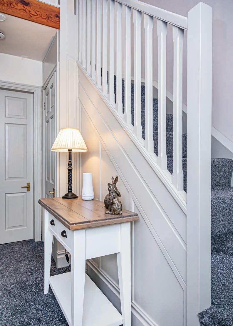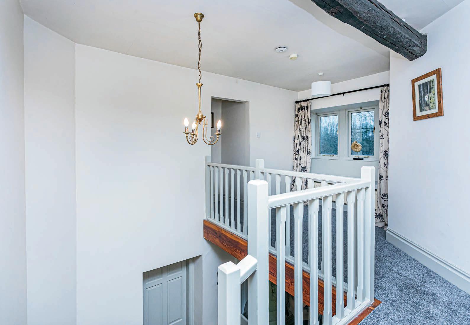 Attractively presented, it’s ready to move straight into and has a welcoming feel. Set under a slated open porch, solid double doors make a striking first impression and open to a vestibule with a hard wearing and practical stone flagged floor, just the thing for life in the country. Stepping through and into the staircase hall, much of the internal joinery has been painted a restful soft grey green and harmoniously tones with the wooden ceiling beams. Other characterful features scattered around the house include exposed stonework, window seats and lovely deep cills. Off the hall is a cloakroom with loo and wash basin, a useful deep storage cupboard and plumbing for the washing machine.