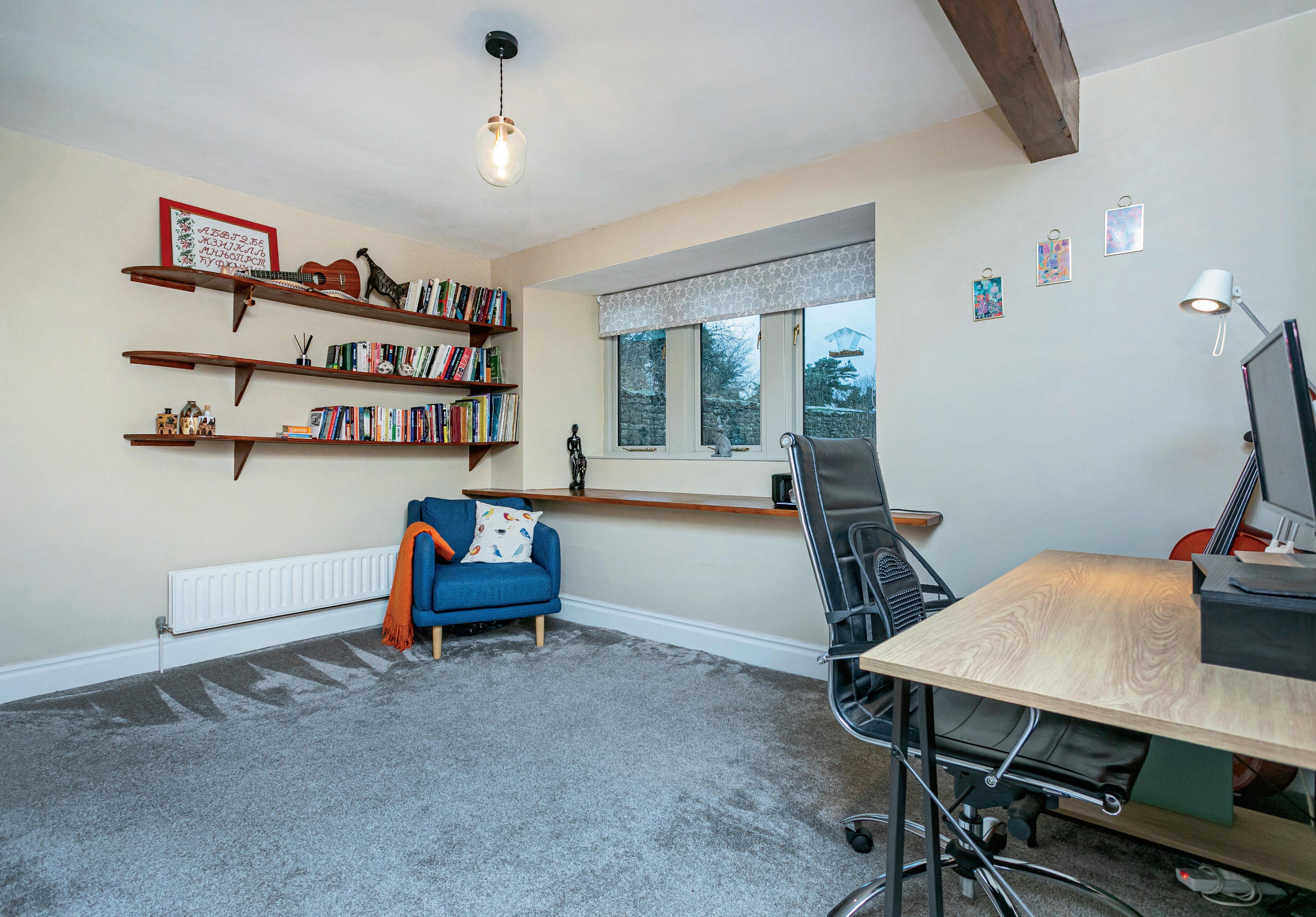 The sitting room is inviting, especially with the Town and Country Dalby Eco wood burning stove. Generous in size there are views to both the front and back gardens with French windows leading out to the westerly facing flagged seating terrace. The office must be a lovely place to work as there is a view straight out to the garden.