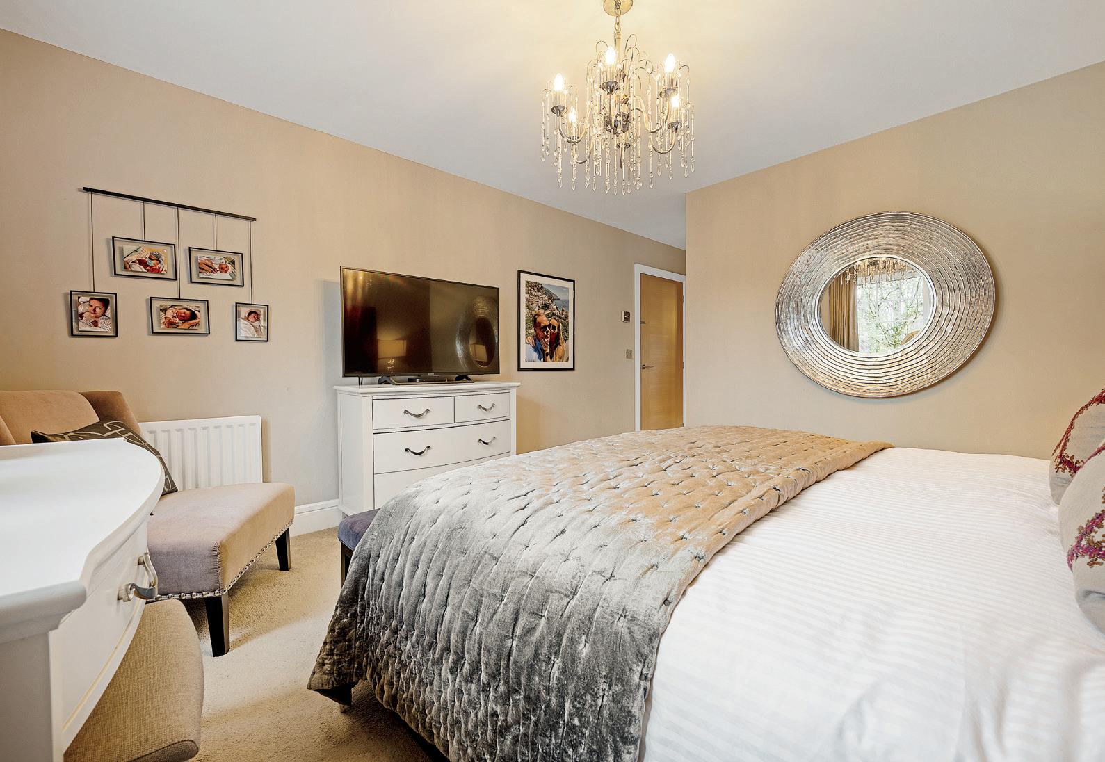 The property has five spacious bedrooms, four with built in wardrobes, and a luxuriously appointed family bathroom. The principal bedroom has a dressing area and ensuite shower room, the guest room has a further ensuite and three further bedrooms are perfect for a growing family. There’s a spacious galleried landing with a linen store and another that houses the hot water cylinder.