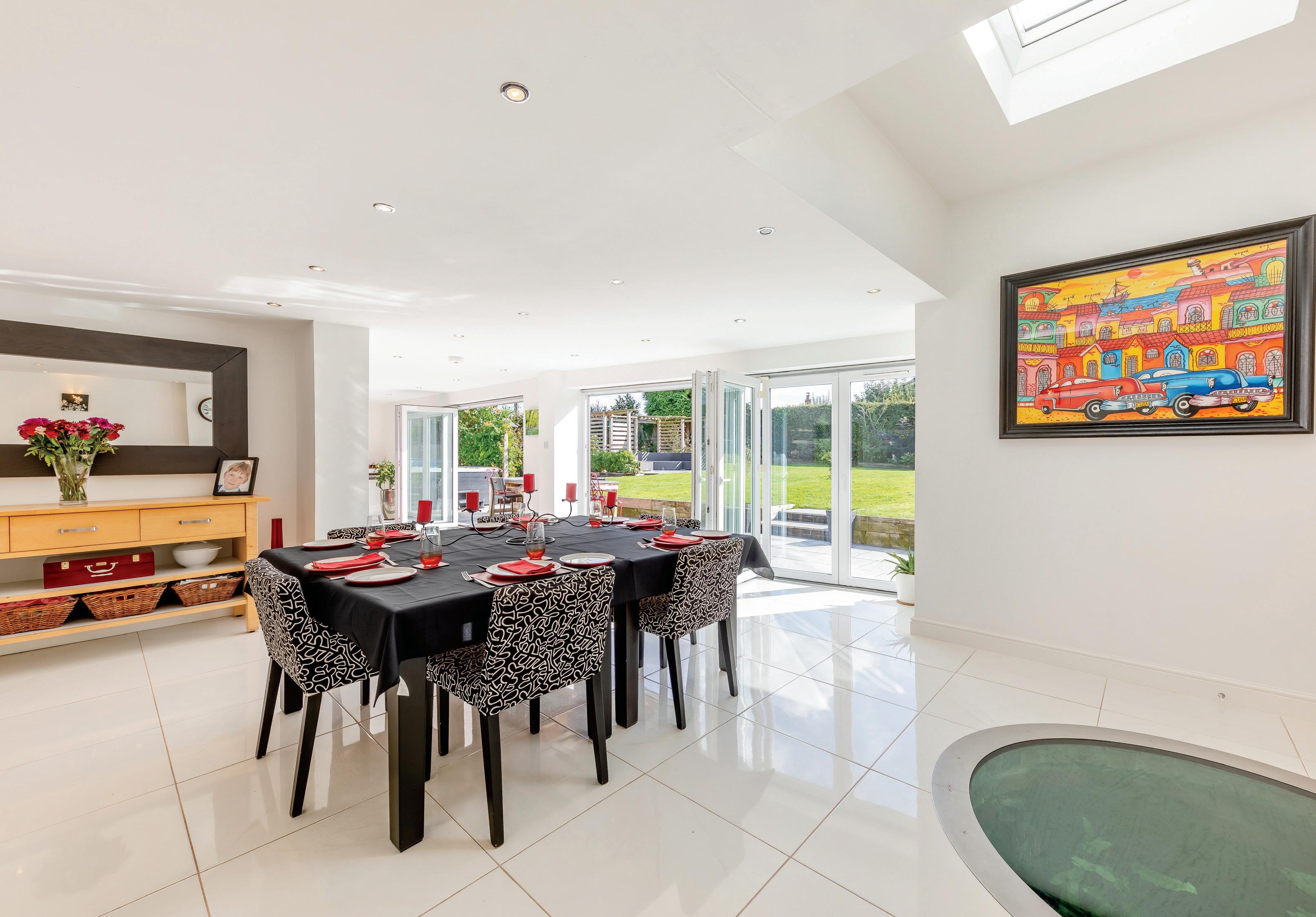 ‘One of the best things about the property is the open plan space and good flow, especially from inside to out. 10 mitres of bi folds leading out to a large patio – one of two – from the kitchen/dining area make sure of this!’