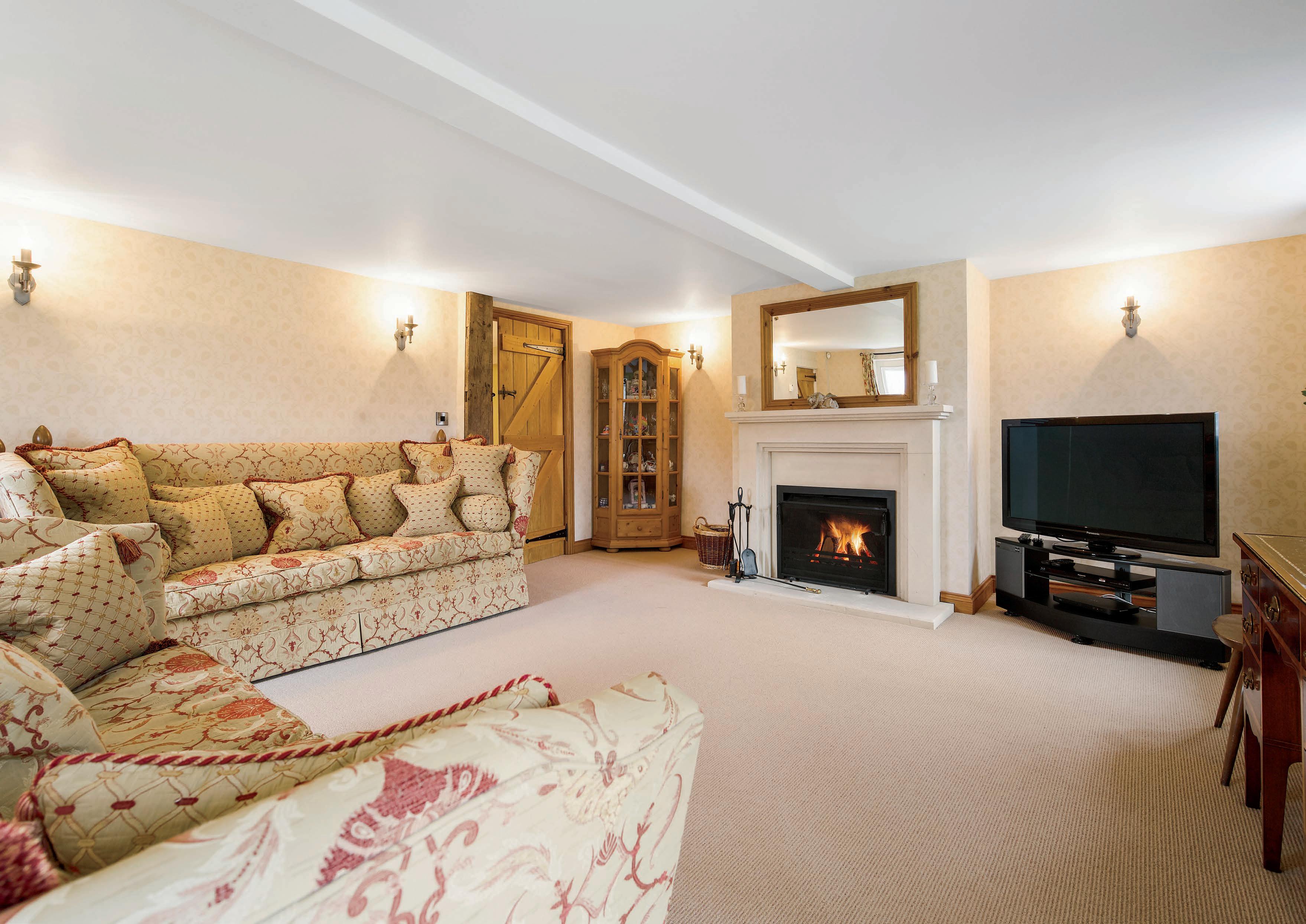 One enters the house into a welcoming entrance hall/snug where an inglenook fireplace and woodburning stove create a cosy atmosphere. A home office leads off to the left, whilst to the right you find the formal lounge; a spacious room that again benefits from a beautiful feature fireplace as well as a charming bay window and window seat that overlooks the garden.