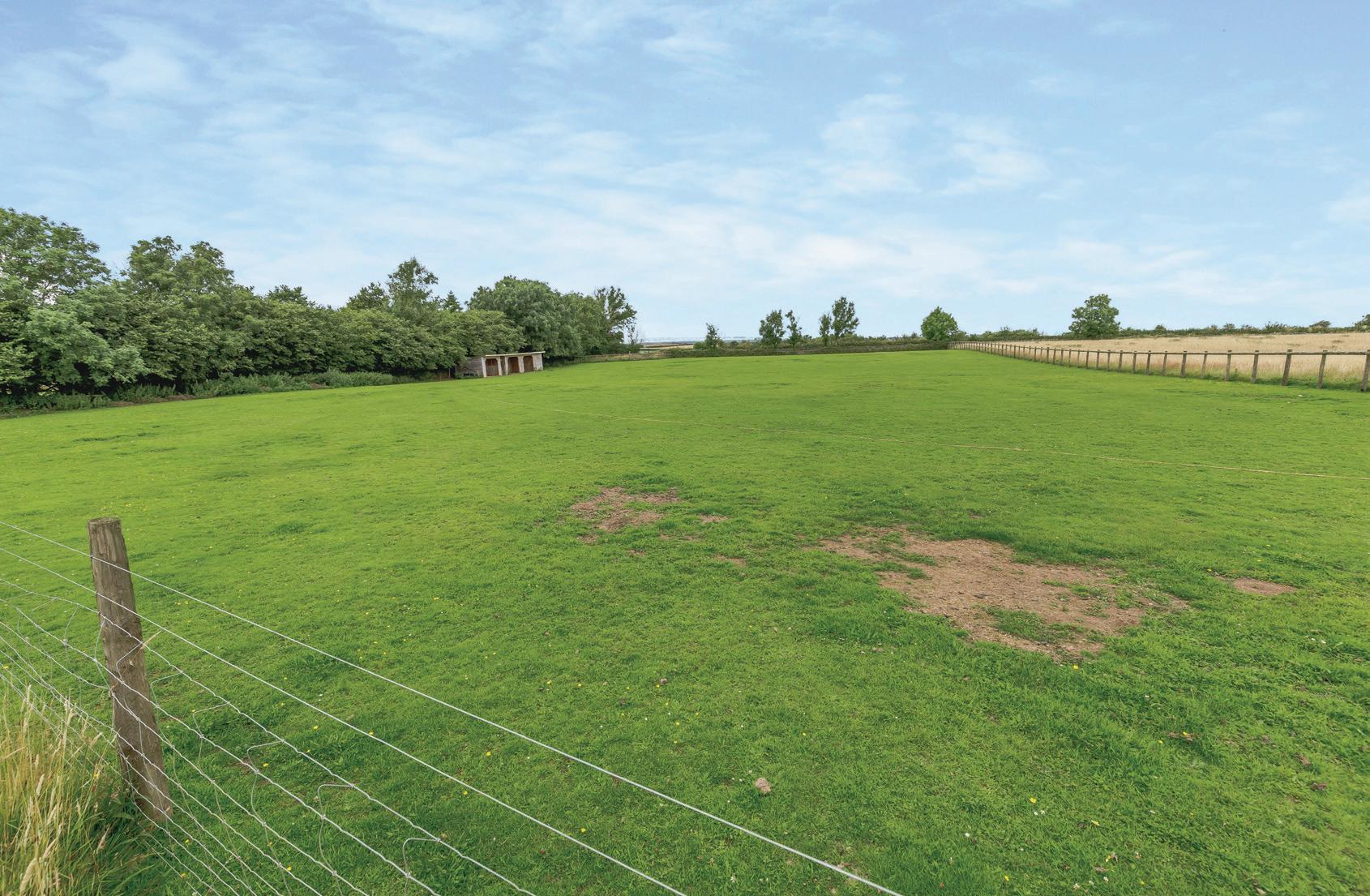 There are 8 of these ranging from about 0.3 acre up to over 1.6 acres. They have been designed to allow for the easy movement of livestock through a series of gates effectively creating lanes and one of the larger ones is an air lock 5 bar gate system onto the drive/ lane. One field has been over-seeded with a meadow mix so that the current livestock (Miniature Shetlands) when moved to it, can obtain their nutrients including camomile, plantain and other herbs. In another a mature Oak tree stands proudly providing ample shade during the sunnier days for the animals. Within the paddocks are also found a range of field shelters.