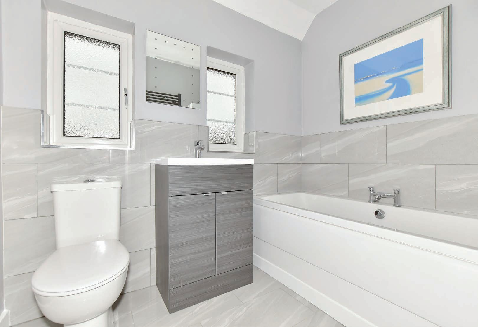 Off the galleried landing on the first floor there is a contemporary bathroom and three double bedrooms including one with fitted wardrobes. The very large dual aspect main bedroom enjoys a raft of built in cupboards, additional eaves storage and a trendy ensuite with a bath and twin vanity basins.