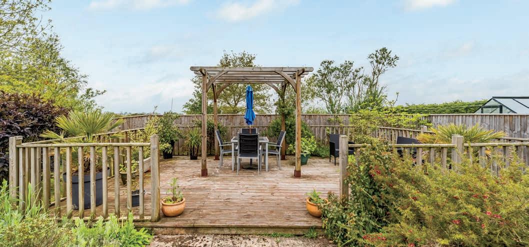 • Trees, borders, shrubs, lawns, paved and decked areas with pergola