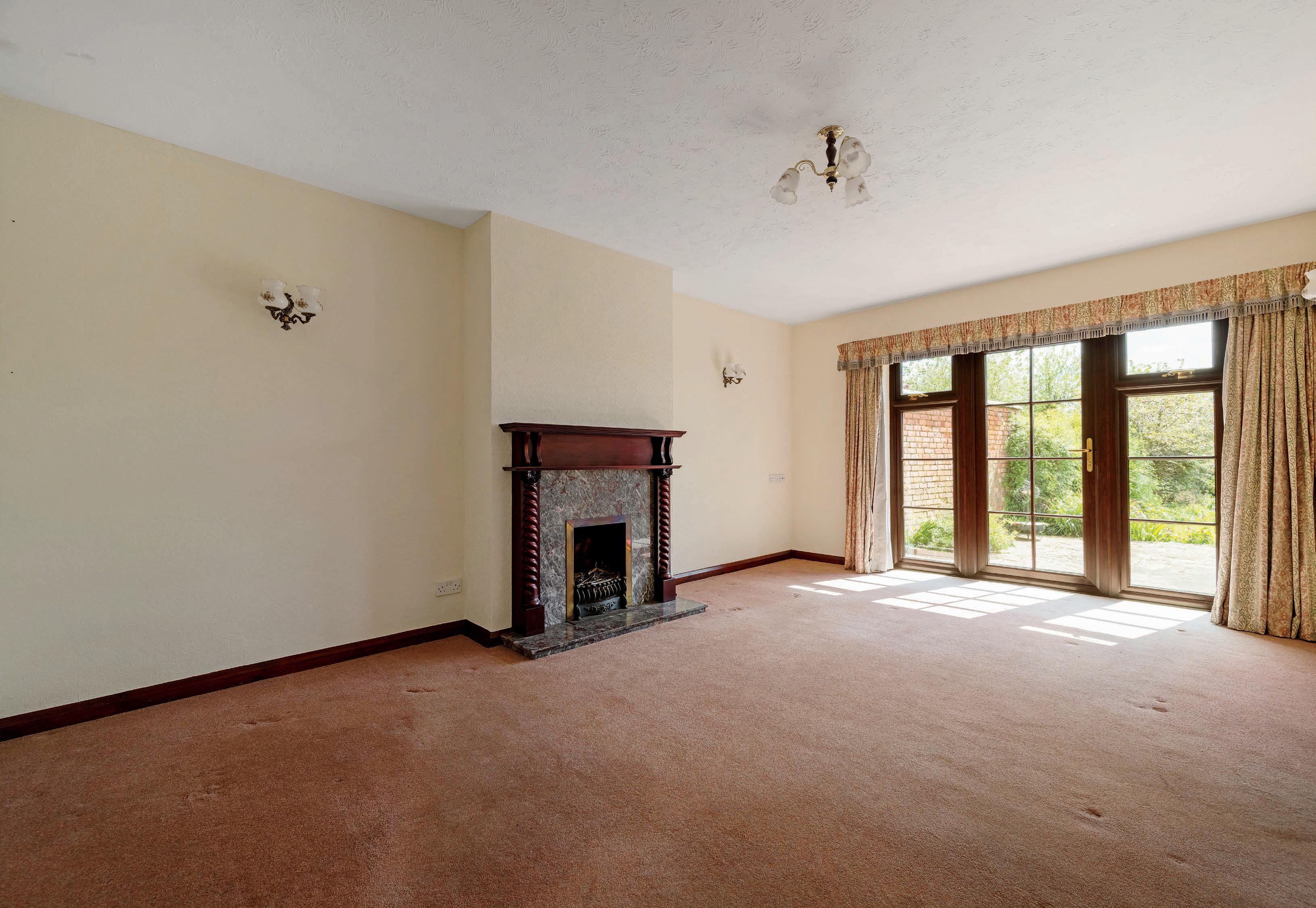 The sitting room has an open fire, and a window and door to the rear elevation.