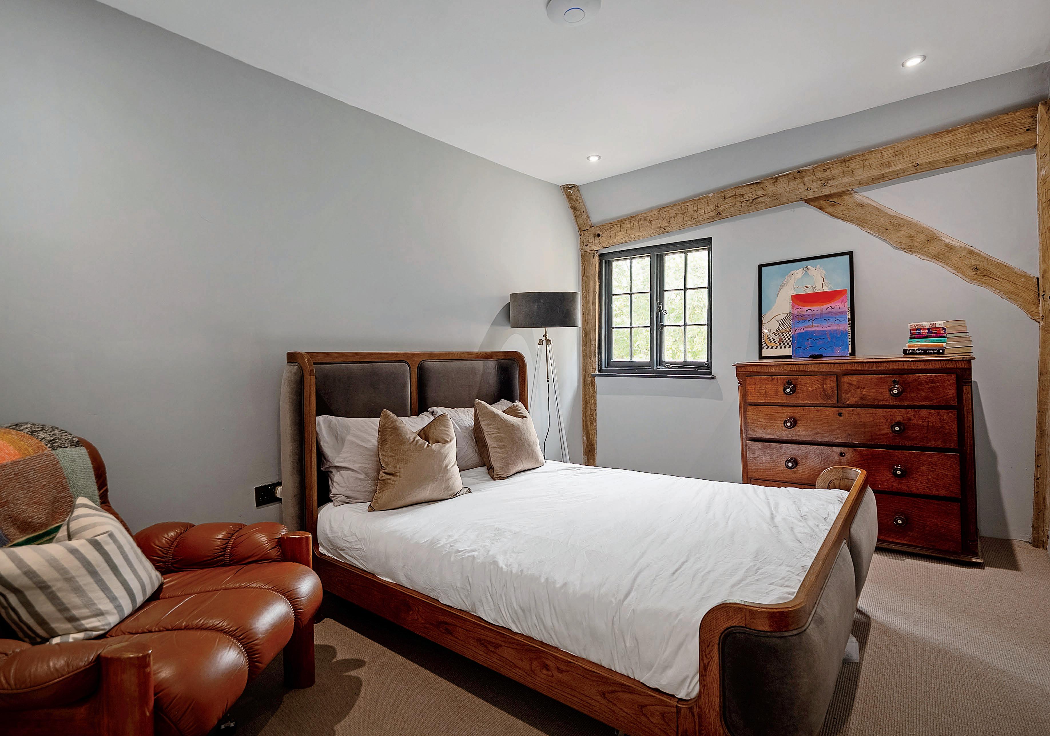 Upstairs, the farmhouse continues to impress with its generous and thoughtfully designed living spaces. The master suite is a true retreat, featuring a spacious dressing area and a luxurious ensuite bathroom. Each of the four bedrooms is filled with natural light and offers a peaceful escape from the world. The large attic room, versatile in its use, could serve as a fourth bedroom, a playroom, or even a private study. The modern family bathroom is a sanctuary in itself, complete with a freestanding bath, a large walk-in shower, and dual sinks, offering both functionality and style.