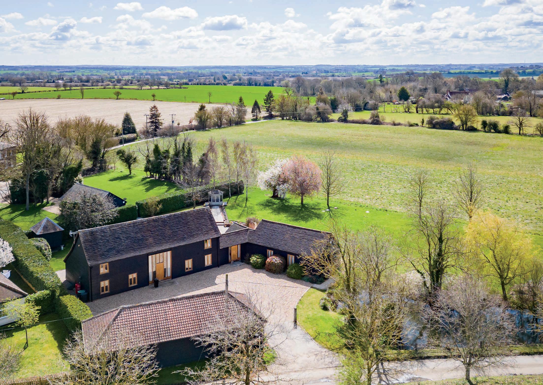 To the right of the driveway is a natural drainage pond, offering pleasant views across to the barn itself.
