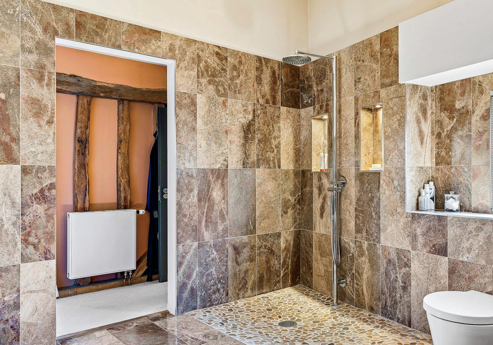 Converted by locally renowned barn specialists R E Butler & Sons, Greenhill Barn is a truly wonderful proposition for many reasons. The main barn with its open plan living, vaulted ceilings and mezzanine ‘break out’ areas features living spaces with wonderful exposed beams and trusses, study, kitchen/ breakfast room with a range of high end appliances, central island and travertine stone floor, utility room, ground floor cloakroom, large principle bedroom suite with incredible fully tiled ensuite bathroom, two further ground floor ensuite bedrooms and a first floor bedroom again with ensuite facilities.