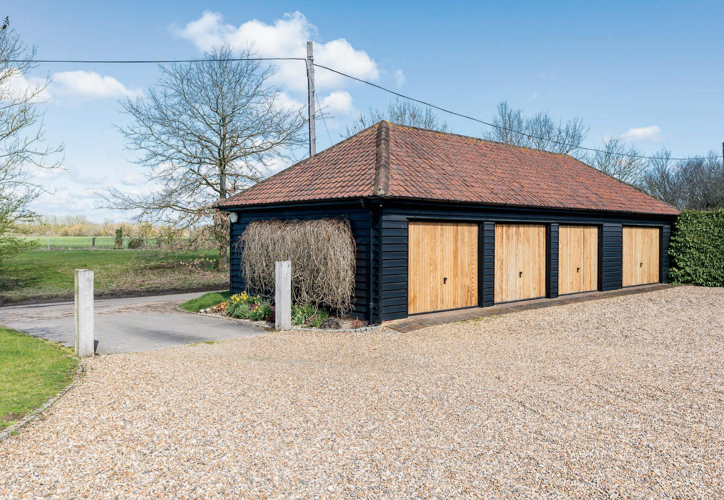 The property benefits from a substantial gravel driveway which is capable of accommodating multiple vehicles. There is also a large detached garage block for four vehicles.