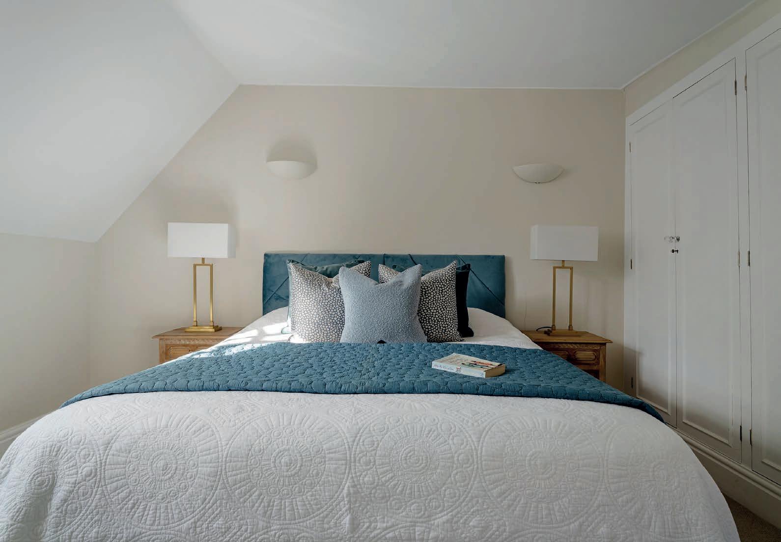 lounge. The second double bedroom, to the left, is a vibrant, large space, sufficient also to incorporate a study or sitting area. It has two built-in double cupboards. To the right of the landing is the third double bedroom, a warm space that overlooks the charming front garden. Loft space for both bedrooms provide excellent storage facilities.