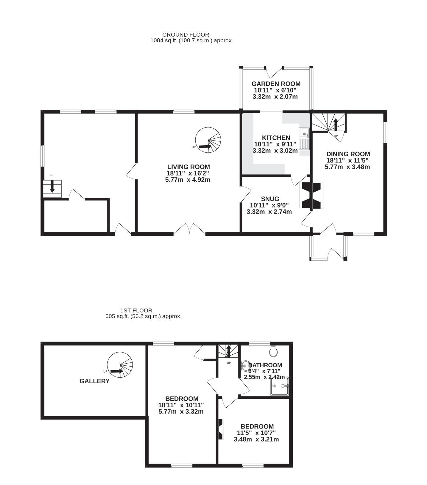 Through the snug, you enter the main living space, centred around a beautiful log burner and rough stone walls. A spiral staircase leads to a galleried mezzanine floor overlooking the living space. Currently used as an office, this flexible area is perfect for working from home.