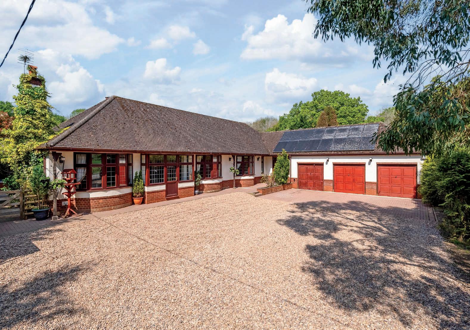 An attractive detached bungalow with its own annexe, set in 5 acres of paddock, woodland and delightful gardens with stables and a triple garage.