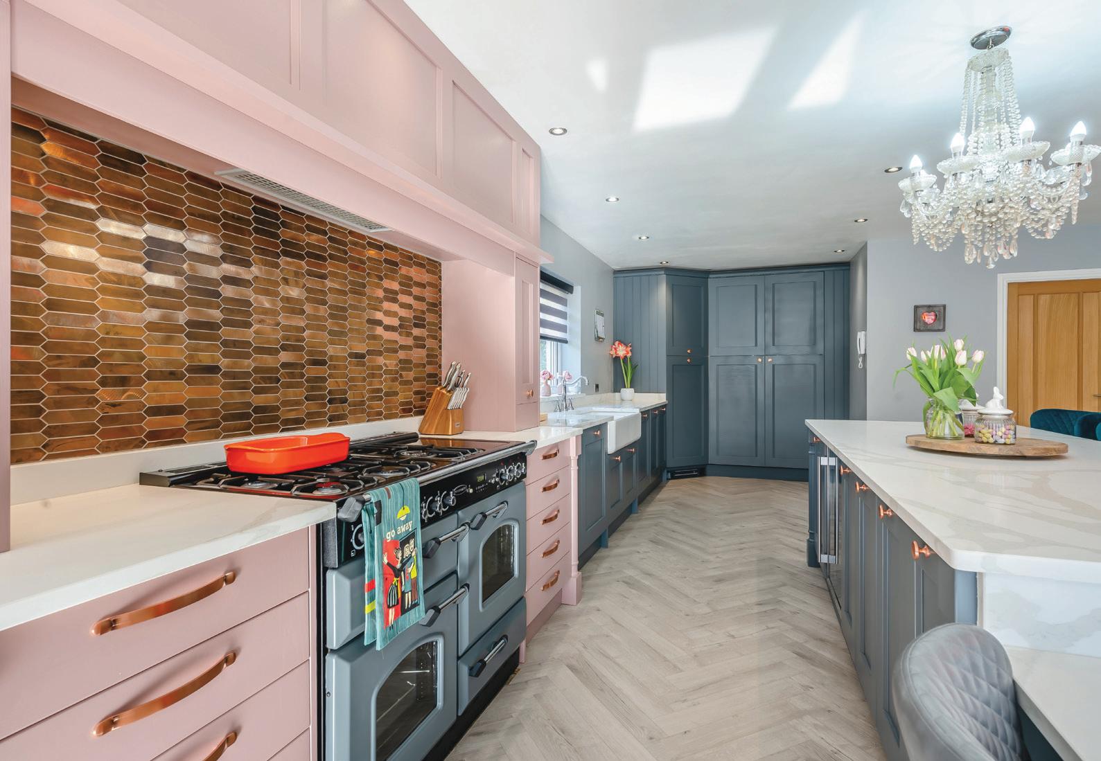 The lounge offers exceptional proportions, has a generous picture window to the front aspect overlooking the south facing garden, whilst offering a glimpse of the Pennines through gaps in the trees. There is an additional window to the rear aspect, high quality tiling to the floor and a stunning rustic brick chimney breast, which incorporates a double-sided fireplace that is home to a doublesided wood burning stove, which sits on a stone flagged hearth and services both the lounge and the kitchen.