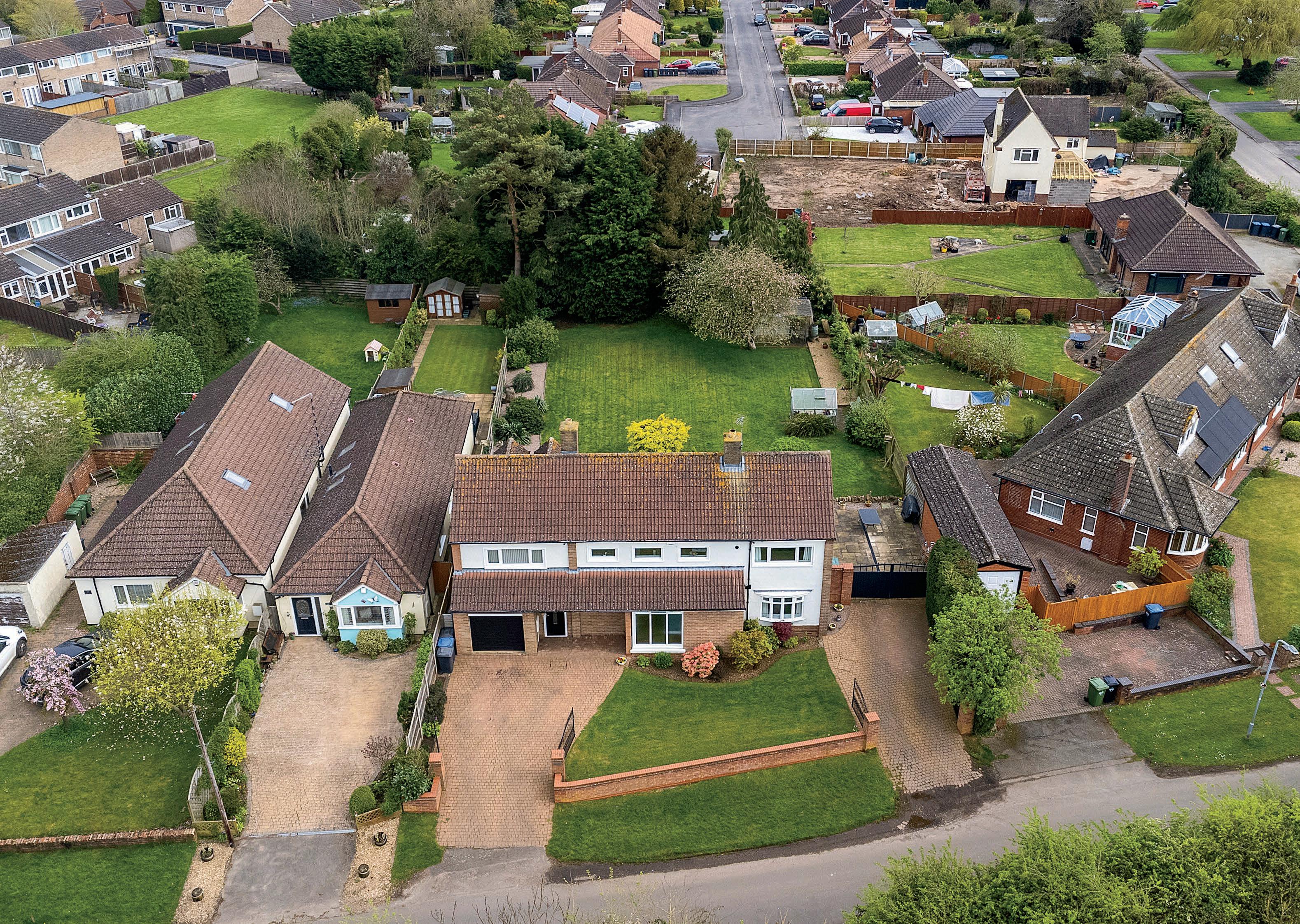 The property occupies an impressive 0.25-acre plot, featuring a walled front garden accessed via wrought iron gates leading to a block-paved driveway with parking for multiple vehicles as well as a further driveway to the right hand side of the property. The front garden is predominantly laid to lawn with mature border plantings. The rear garden is a private sanctuary with various patio areas, including a granite-clad main patio spanning the rear of the property and extending to additional seating/parking areas crafted from Indian Sandstone. This layout allows for secure parking behind double gates with convenient access to the front driveway. The expansive garden is mostly laid to lawn and adorned with mature trees and herbaceous shrubs.